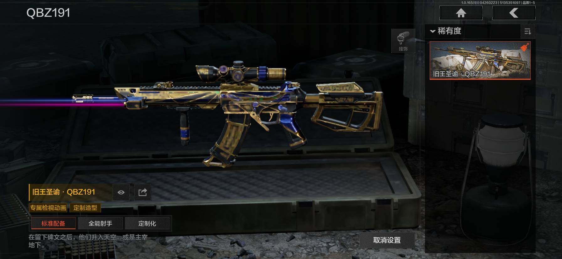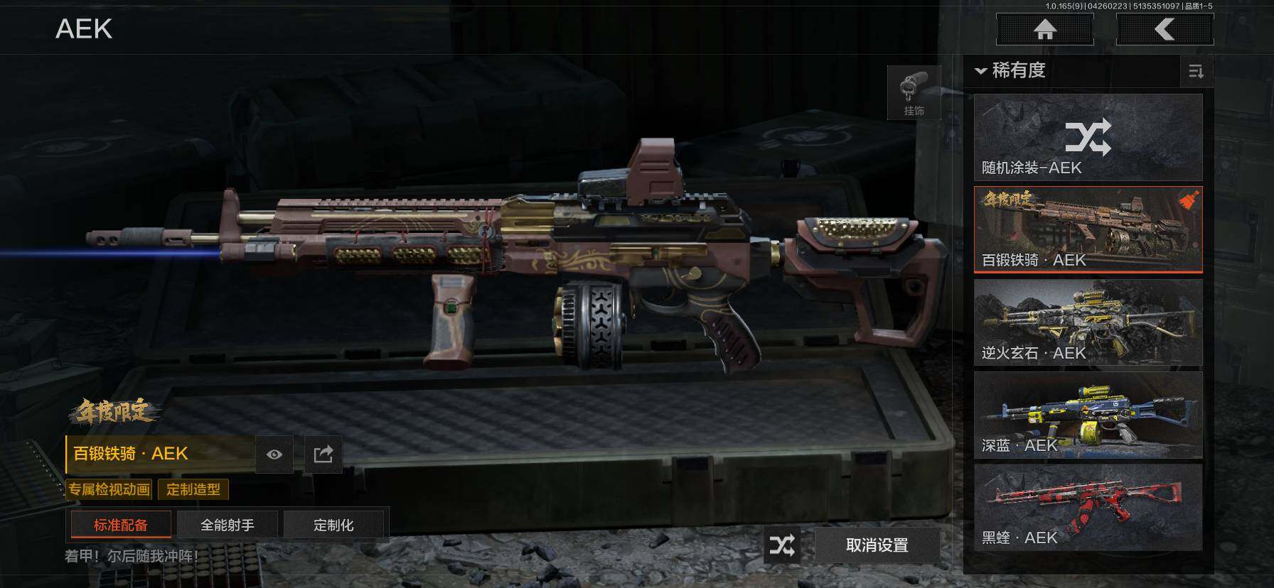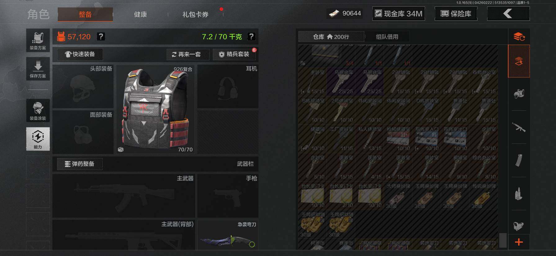 【C2611596553】【AQZG2387】等级:30/段位:专家/仓库价值(百万):177/柯恩币:34/急袭弯刀/工兵铲/苍穹利爪/百炼恒常/蝮蛇/冥河/深潜行者II/苍白隐者伪装服/林中人·FAL/镀火熔金H416/战术大师AN94/旧王圣谕QBZ191/百锻铁骑AEK/利齿风暴MPX/旧王圣谕VSS/冰河碎影MK14/千炼铁阵MK14/骑士之剑AX50/近卫荣誉RPK16/芭斯特