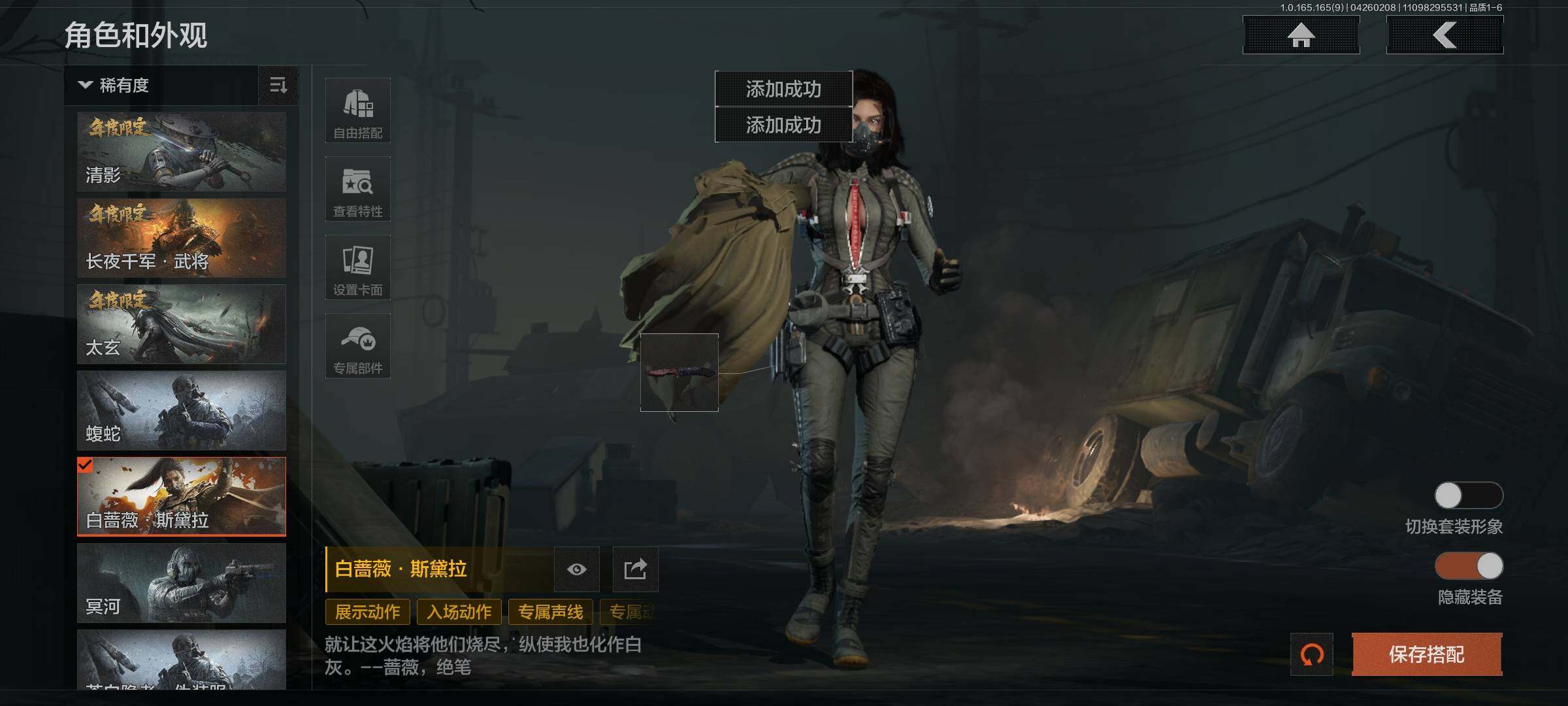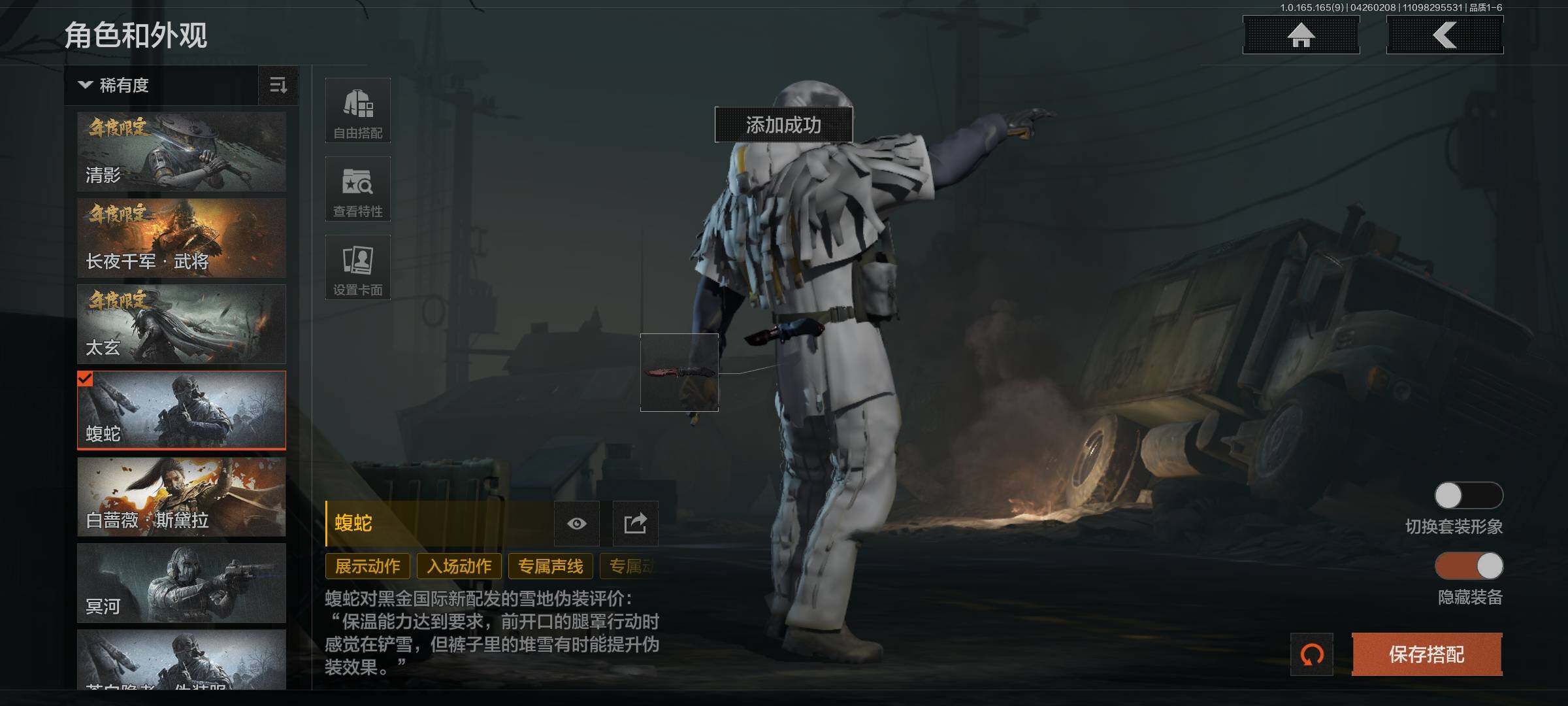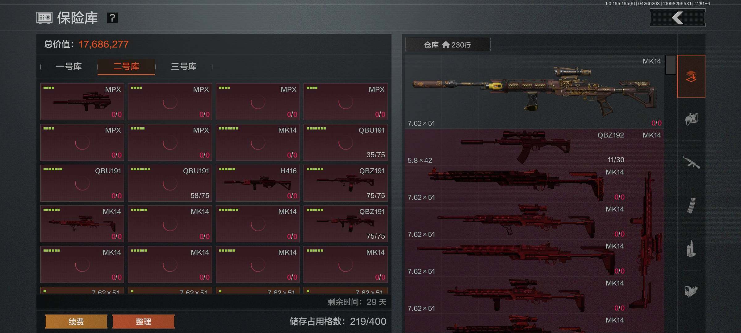 【C2611573943】【AQZG2386】等级:30/段位:专家/仓库价值(百万):193/柯恩币:109000000/瑞兔折刀/赤火炉心/工兵铲/蝮蛇/白蔷薇斯黛拉/冥河/苍白隐者伪装服/深潜行者II/多斯地下法则/竞技风潮M4A1/林中人·FAL/百锻铁骑AEK/玉擎天工AN94/玉擎天工MP5/骑士之剑VSS/千炼铁阵MK14/清影/太玄/长夜千军武将/冲刺极限QBZ192