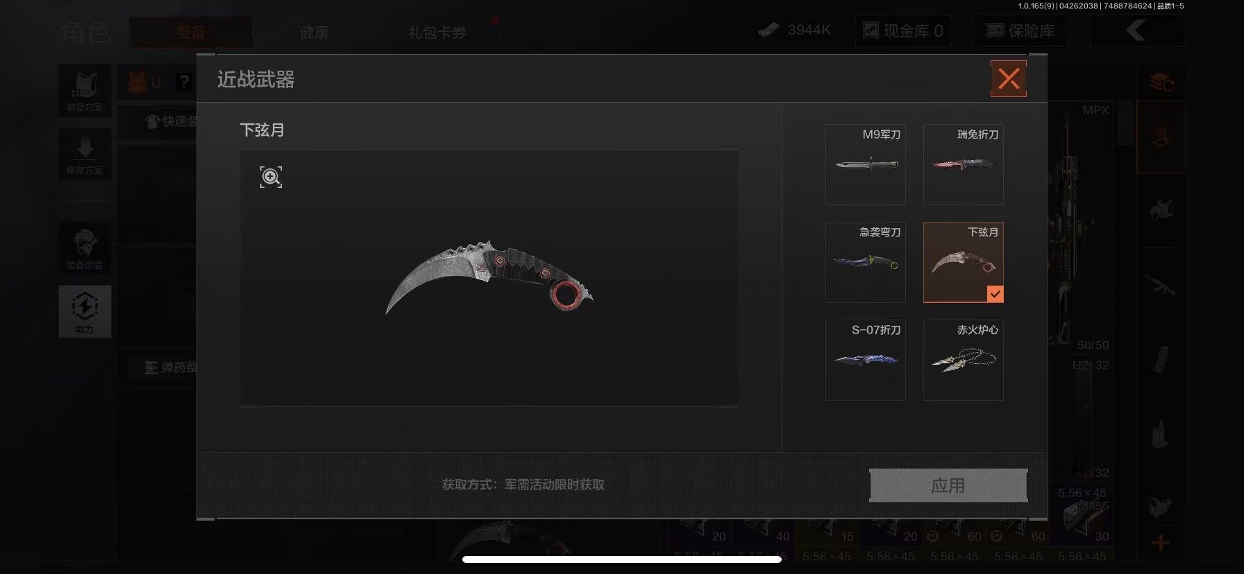 【C2611591233】【AQQH1356】段位:新锐/仓库价值(百万):4.6/瑞兔折刀/急袭弯刀/下弦月/S-07折刀/赤火炉心/白蔷薇斯黛拉/使徒欧瑞恩/脉冲马克西姆/长夜千军武将
