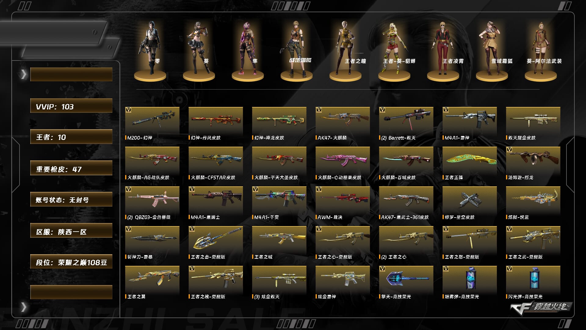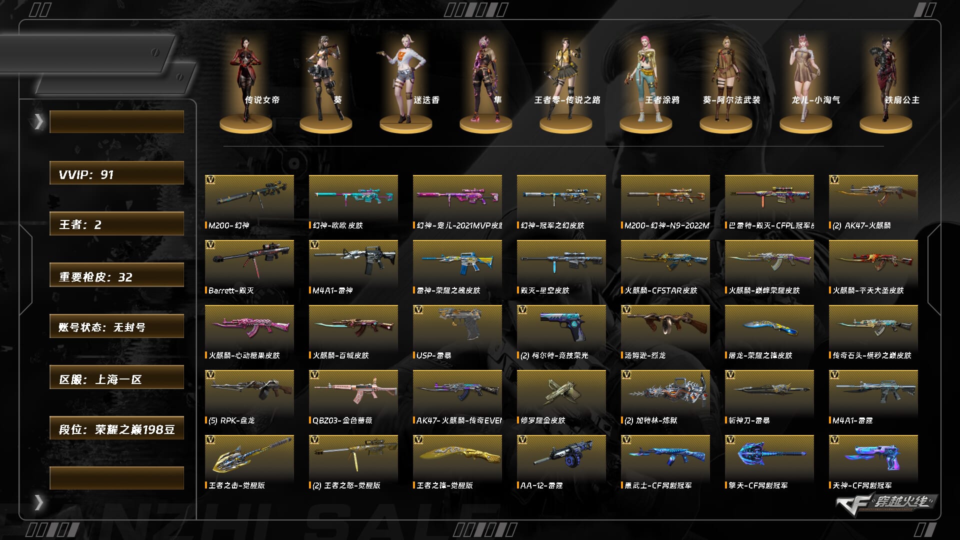 【C2530136243】[13100155]XH8631/南部/广西一区/【荣耀之巅251豆】/Lv.102 荣耀元帅/VIP6/85V/传说暗裔/幻神/*2/幻神音效卡/王者星神/QBZ金色蔷薇/金色蔷薇古蛇迷踪/白虎/白虎暗星/白虎电玩蓝兔/青龙/M200竞技荣光套/6烈龙/柯尔特竞技荣光/USP雷暴/毁灭/三套竞技荣光雷/【音效卡】/雷神怀旧音效卡/黑骑士音效卡/火麒麟音效卡/死神雪域霜狐怀旧音效卡/昌龙怀旧音效卡/碧霄极光音效卡/炼狱百战金芒庆典舞曲音效卡/【枪皮】/荣耀之怒/毁灭青帝/火麒麟心动糖果/火麒麟盘古/雷神诺拉/雷神源计划2.0/雷神宇航兔/【四防角色】/电竞教官云悠悠/灵狐者职业经理/【角色】/零/战地猎鹰/王者零传说之路/雪域霜狐/奇洋探员/【小人枪】/朱雀蛇隐宗/火麒麟零纪元/雷神精英刀锋/COP旗袍/【道具】/永久烟雾头/护目镜/超级背包/各种戒指/各种光效/各种玩偶/永久AC/永久雷包/细节看图/【此账号未被封过十年】