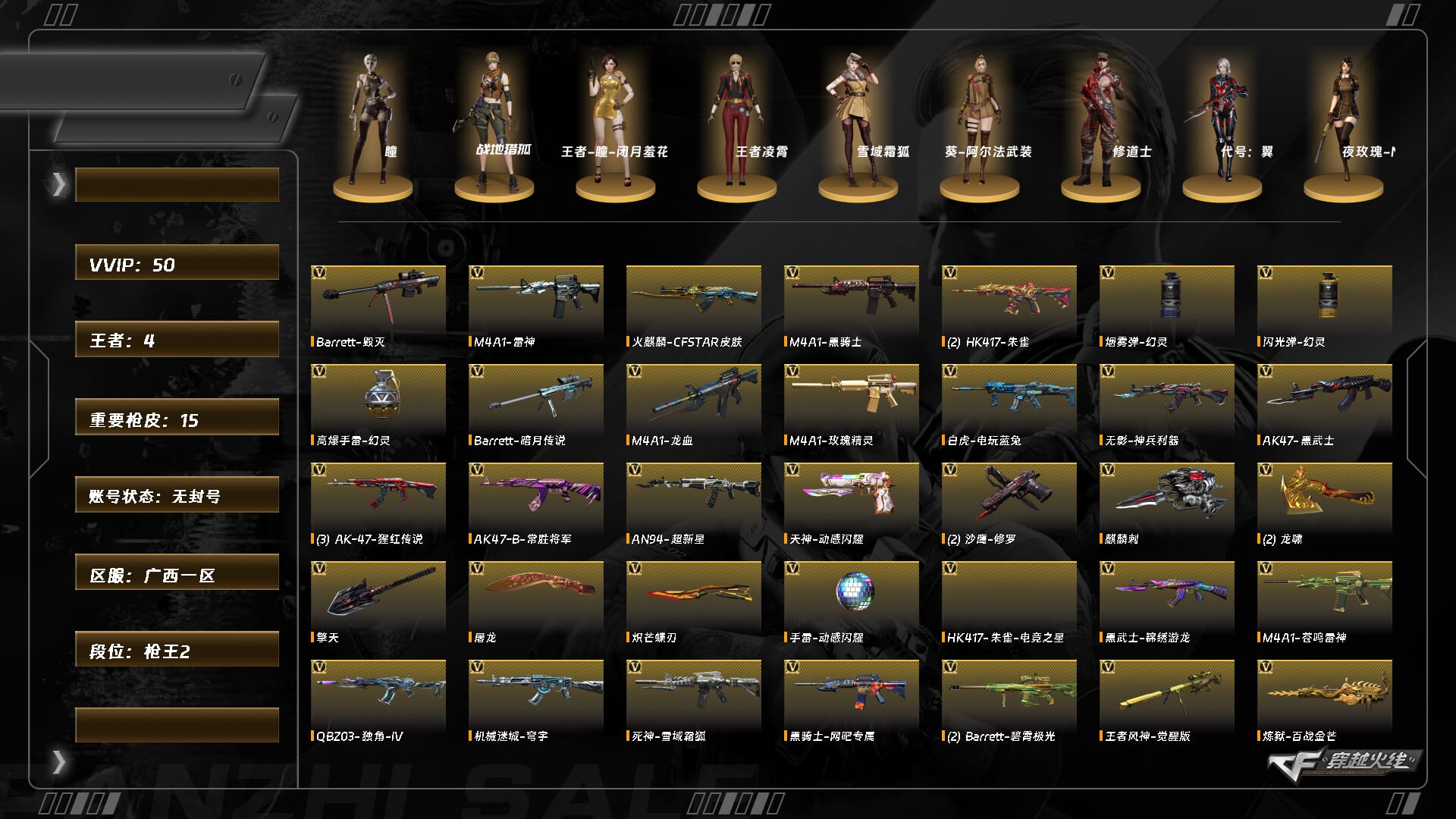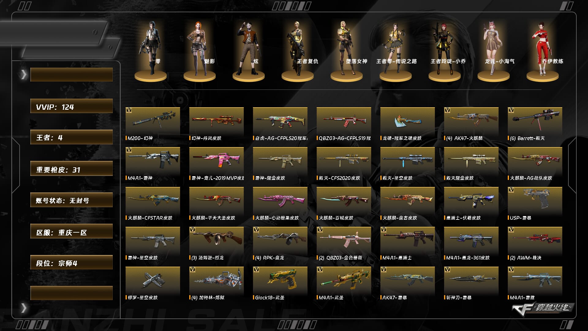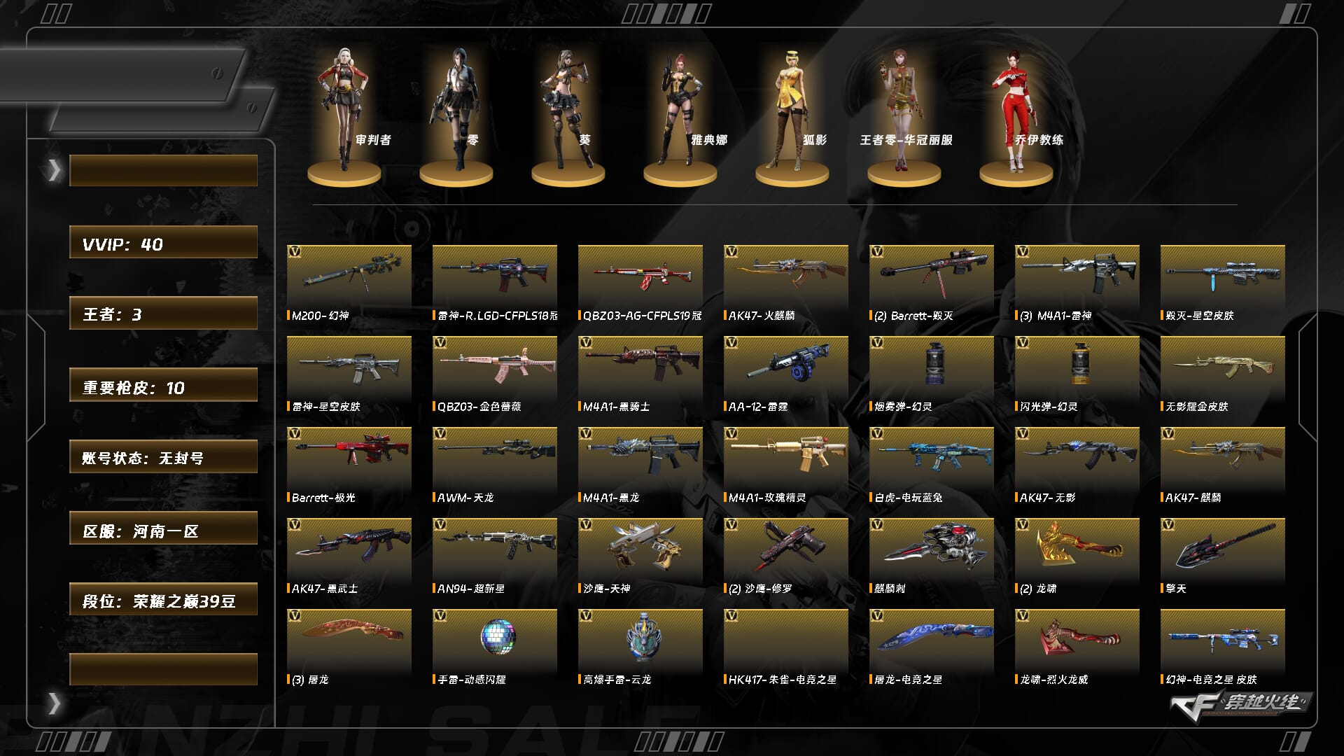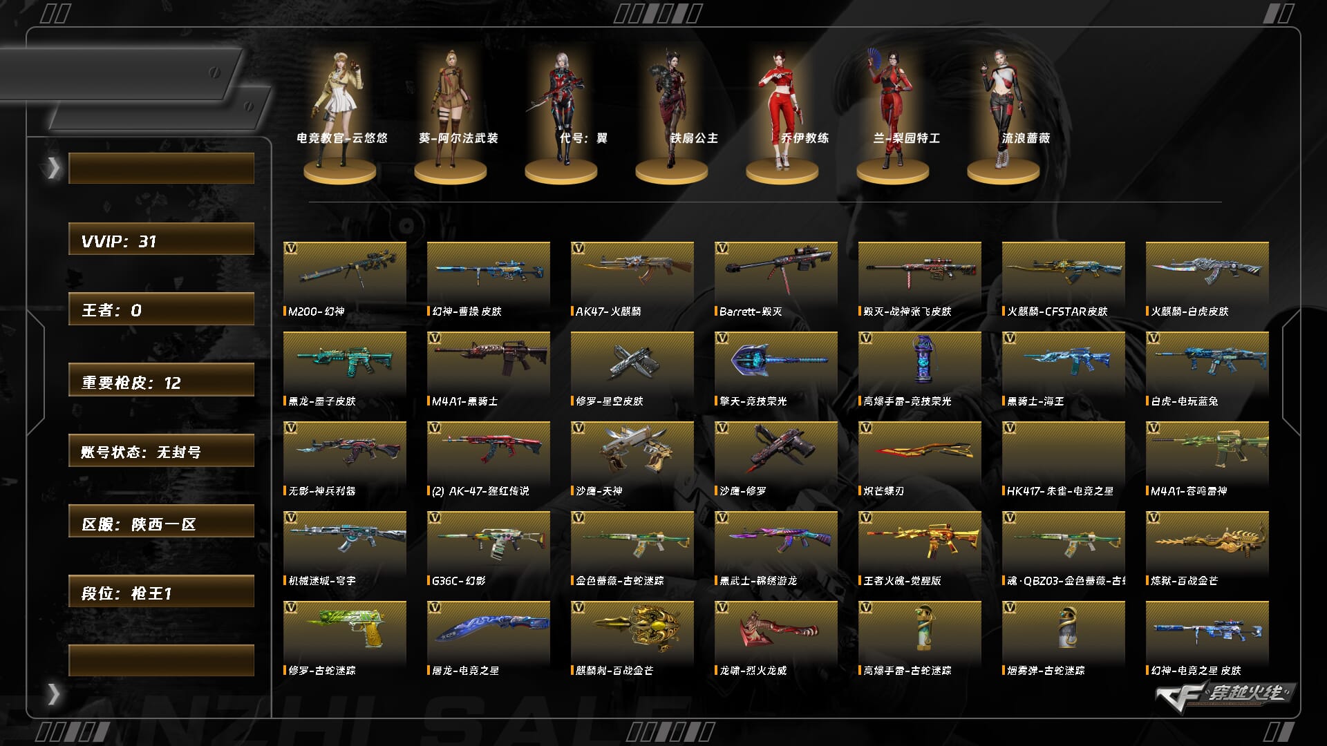【C26605111】[15366035]XH9814/西部/陕西一区/【枪王1】/Lv.100 高阶大元帅/VIP5/31V/幻神/幻神电竞之星/幻神曹操/G36C幻影/金色蔷薇古蛇迷踪/白虎电玩蓝兔/朱雀电竞之星/炽芒蝶刃/毁灭/火麒麟/黑骑士/【音效卡】/火麒麟音效卡/炼狱百战金芒庆典舞曲音效卡/【枪皮】/毁灭英雄计划/毁灭战神张飞/火麒麟白虎/雷神源计划2.0/雷神宇航兔/【四防角色】/兰梨园特工/电竞教官云悠悠/葵阿尔法武装/铁扇公主/乔伊教练/流浪蔷薇/【小人枪】/朱雀蛇隐宗/【道具】/永久烟雾头/护目镜/超级背包/各种戒指/各种光效/各种玩偶/永久AC/永久雷包/细节看图/【此账号未被封过十年】