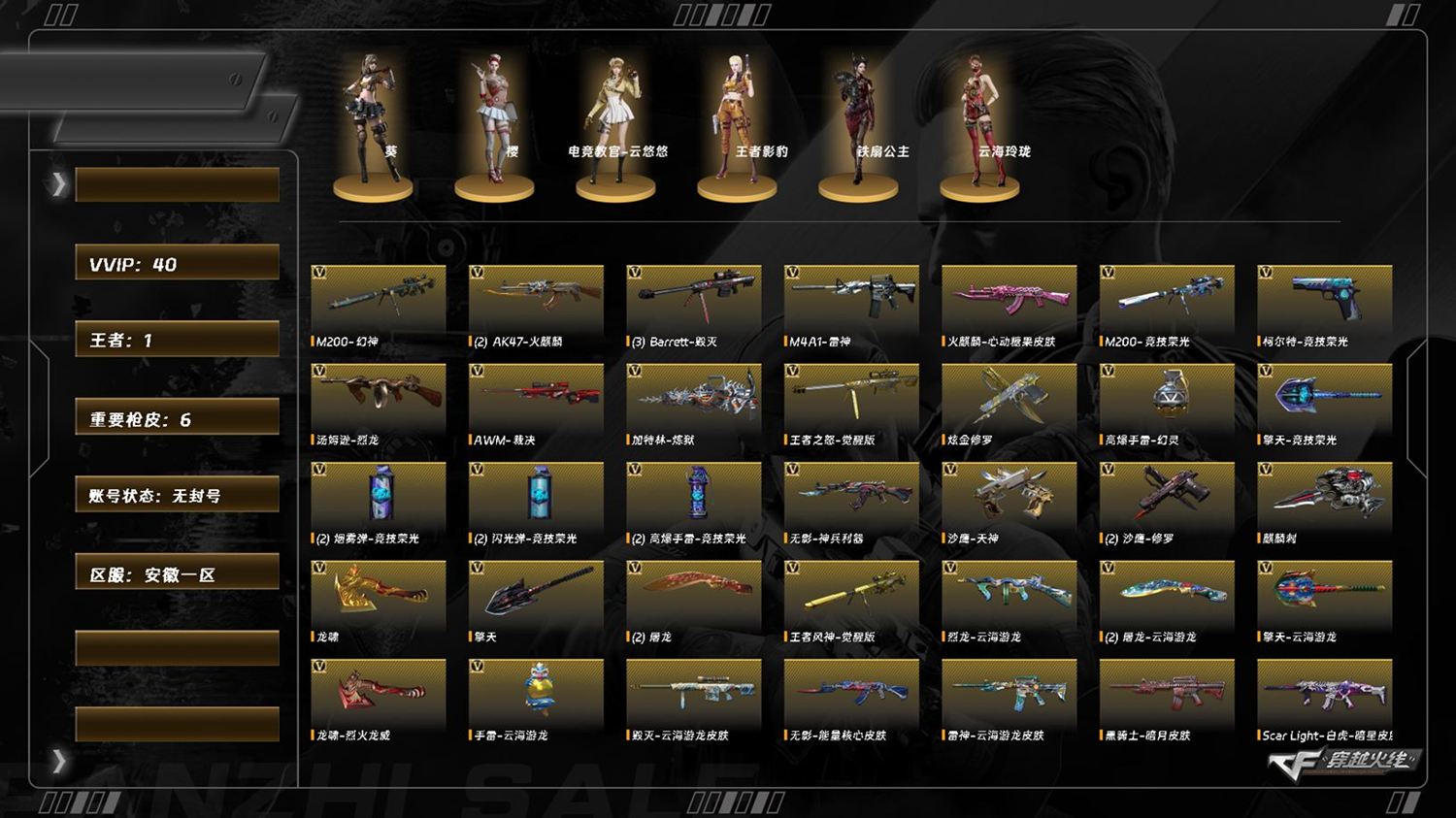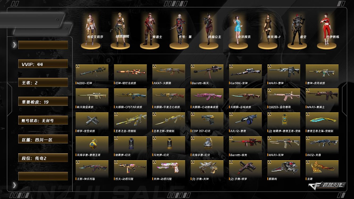 【C261446945】[15650146]LC7701/北部/河北一区/可排位/72v/幻神/王者玄武/觉醒版/火麒麟/雷神/黑骑士/无影/死神/黑武士/黑鲨/朱雀/黑黑武士锦绣游龙/死神雪域霜狐/机械迷城穹宇/USP雷暴/COP堕天神/【角色】/零/迷迭香/葵阿尔法武装/王者瞳闭月羞花/王者玲珑/雪域霜狐/【音效卡/死神雪域霜狐怀旧音效卡/屠龙云海游龙音效卡/毁灭音效卡/雷神音效卡/】/【枪皮】/雷神耀金/毁灭星空/王者武器/王者之心/王者之锋/炫金武器/炫金火麒麟/炫金毁灭/炫金天神/【小人枪/火麒麟灵狐/巴雷特零水下丽影/KAC锯式机枪黑桃战神/斯泰尔蝴蝶/】/永久AC/有过十年记录/钱包无法注销/找回包赔
