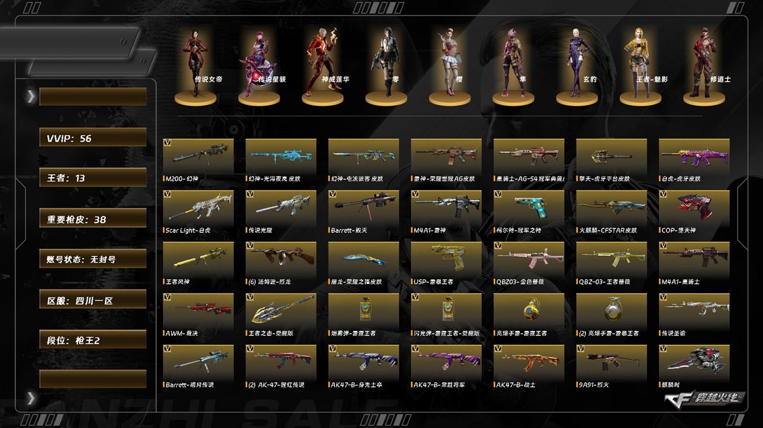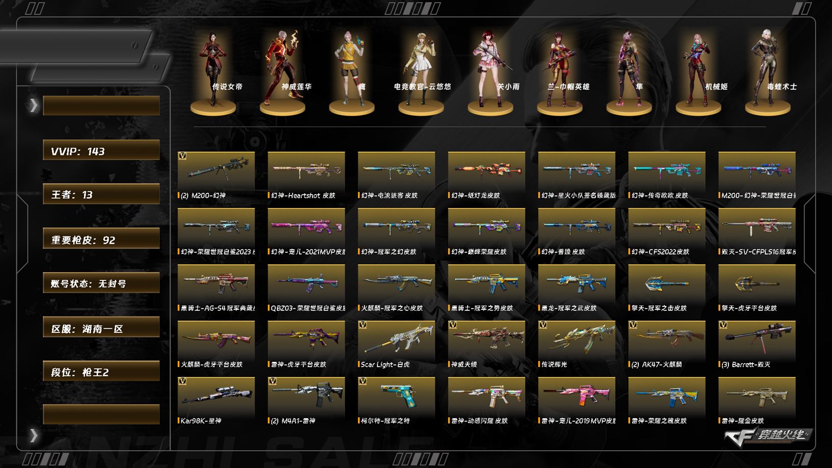 【C264544220】[16857581]LC8085/南部/湖南一区/可排位/70v/幻神/幻神纸灯龙/幻神电竞之星/LC200竞技荣光/QBZ金色蔷薇/朱雀/朱雀音效卡/朱雀电竞之星/朱雀电竞之星竞星跃动音效卡/【四防角色/电竞教官云悠悠/王者潘多拉/王者影豹/】/【角色】/零纪元/幻面灵狐/乔伊教练/蛇隐宗/云海玲珑/【音效卡/黑骑士音效卡/屠龙电竞之星竞星跃动音效卡/修罗云海游龙音效卡/烈龙云海游龙音效卡/】/【枪皮】/屠龙星耀/火麒麟傲竹金蛇/雷神刘备/雷神源计划/雷神维纳斯/修罗星空/王者武器/王者蔷薇/王者森决/【小人枪/朱雀蛇隐宗/水枪不败狙神/】/永久AC/有过十年记录/钱包无法注销/找回包赔