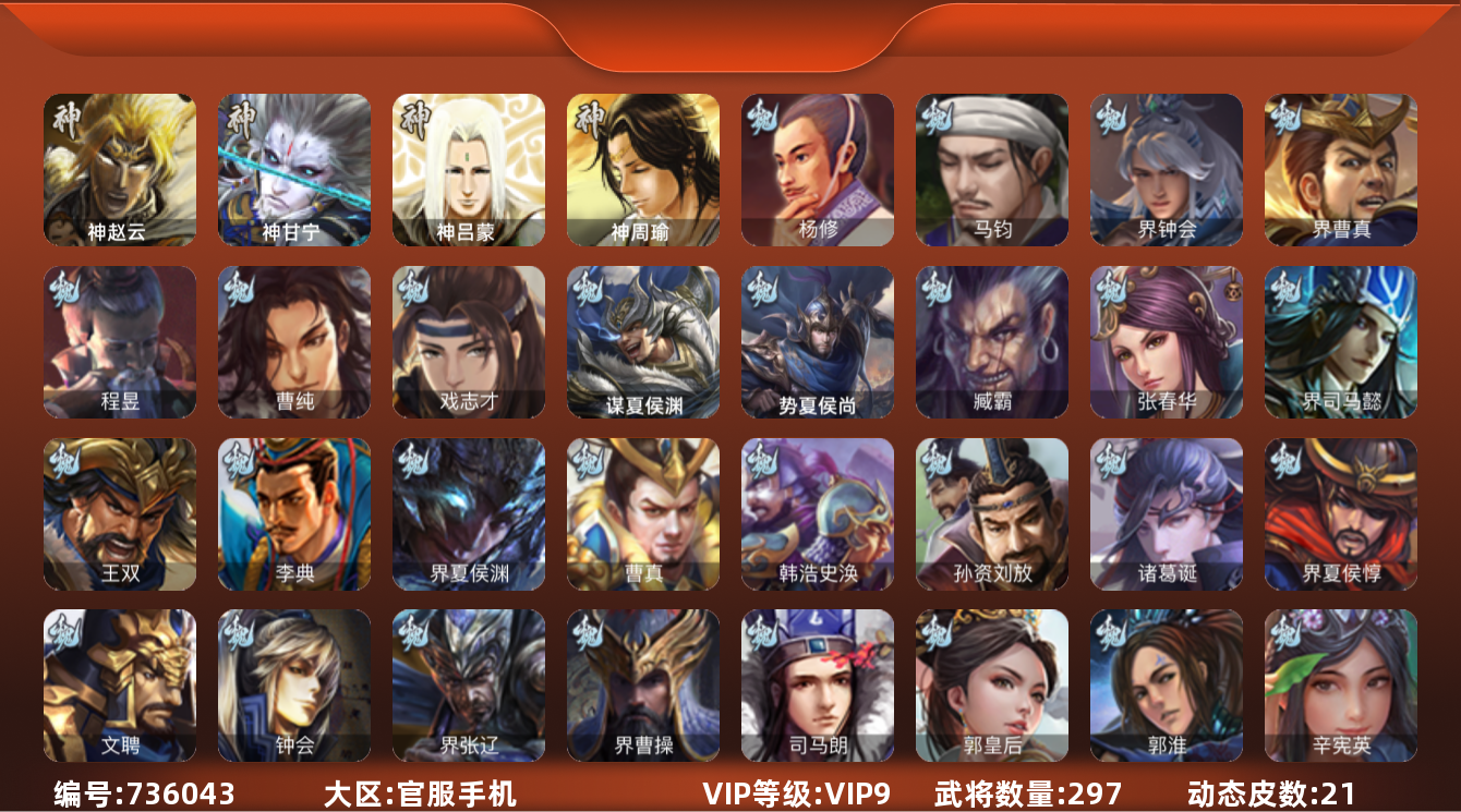 【C266124604】[17276606]0AV4OU史诗武将42个孙寒华,杨彪,十常侍,南华老仙,神孙策,群-司马昭,杜预,留赞,王元姬,界徐盛,谋关羽,曹婴,界左慈,蒋干,神吕布,戏志才,界钟会,神赵云,沙摩柯,张让,界李儒,神刘备,卑弥呼,张星彩,马云騄,,沮授,兀突骨,曹纯,谋赵云,程昱,董允,神张辽,公孙康,嵇康,谋马超,星黄忠,花鬘,,左慈,谯周,杨修,星董卓,谋张角,魏-司马昭,貂蝉-舞惑群心,孙寒华-威灵尽显,神孙策-霸王再世,戏志才-举棋若定,徐盛-破军杀将,张星彩-临军对阵,卑弥呼-呼风唤雨,孙策-虎踞江东,曹丕-气荡山河,邓艾-神兵天降,黄月英-明良千古,诸葛果-仙池起舞,孙茹-鱼游濠水,李丰-太仓聚粟,甄姬-明珠耀躯,荀彧-驱虎吞狼,周处-义除三害,