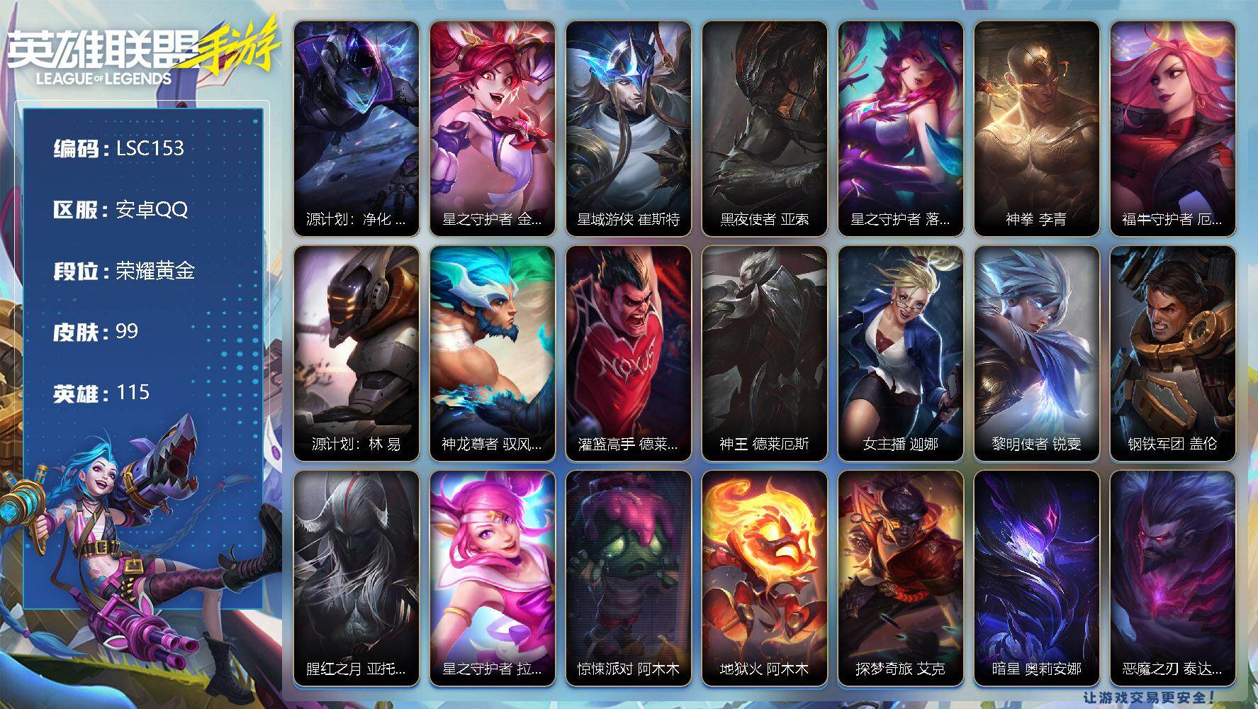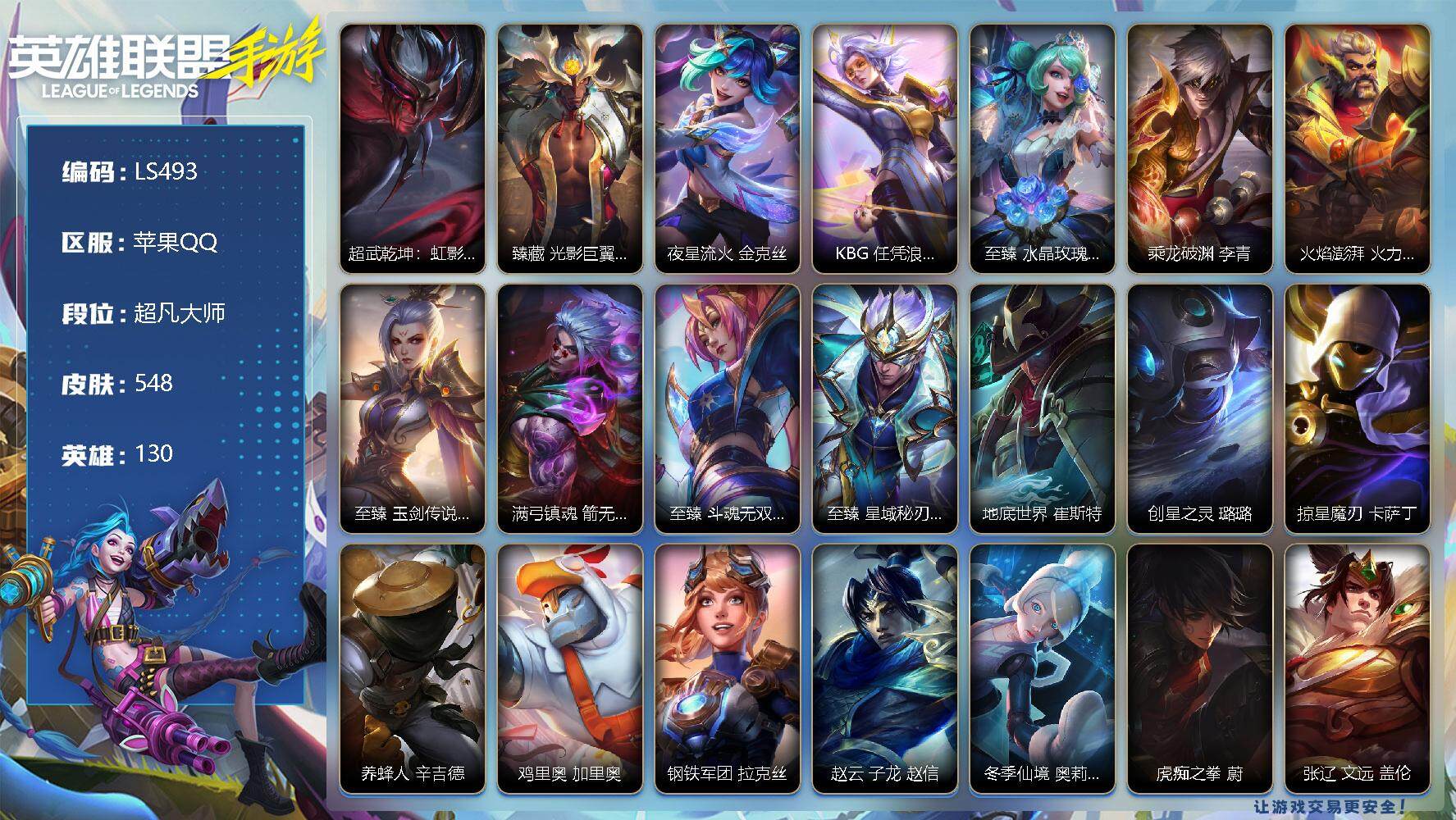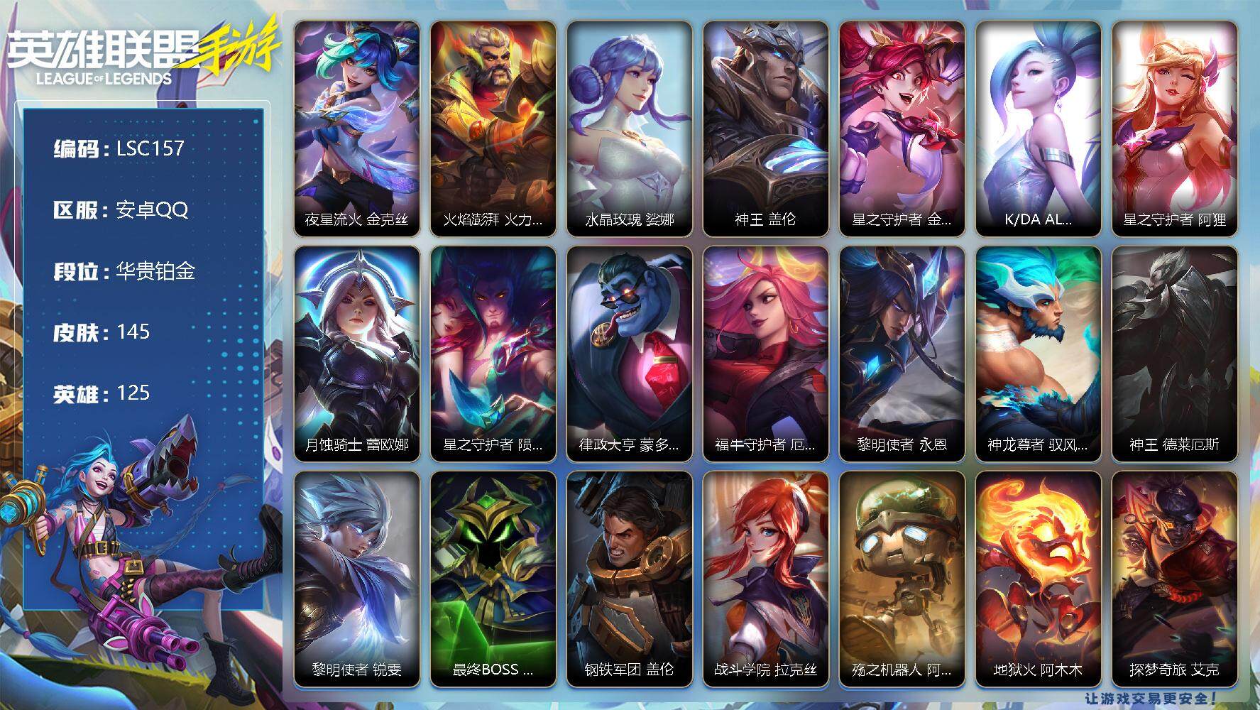 【C2531003083】【LSSA169】131英雄/362皮肤/1典藏/4神话/63传说/182史诗/华贵铂金/超武乾坤:征服 莎弥拉/龙的传人盲僧/乘龙破渊 李青/至臻 心之钢 永恩/闭月之颜貂蝉/张辽文远/水晶玫瑰皇子/山海绘卷 烬/山海绘卷 诺提勒斯/山海绘卷 沃利贝尔/神王盖伦/海魔至尊 亚托克斯/暗星女王拉克丝/心之钢 凯隐/源计划: 净化/光明哨兵薇恩/北极星神 黛安娜/黎明使者 赵信/星之守护者 金克丝/暗星尊/青花瓷 奥瑞利安·索尔/星域游侠卡牌/星之守护者 卡莎/至尊魔女 莫甘娜/魔女 伊芙琳/星之守护者 阿卡丽/源计划:超体 莫德凯撒/黑夜使者亚索/神龙尊者 昼日真龙 亚索/斗魂无双 亚索/星之守护者阿狸/灵魂莲华 阿狸/天煞劫/星域武神 贾克斯/西部魔影卢锡安/斗魂无双 卢锡安/日蚀骑士蕾欧娜/月蚀骑士蕾欧娜/驯龙炮手/星之守护者 落/翩翩绣蕊 霞/剪胜裁春格温/霸天原祖 沃利贝尔/神拳盲僧/神龙尊者 圣龙 李青/律政大亨/秘灵奇境 婕拉/炼狱魔犬/福牛守护者女枪/跳跳倩影 厄运小姐/光电璀璨 泽丽/灵魂莲华 瑟提/黎明使者 永恩/源计划:林 易/神龙尊者 驭风啸龙/灌篮高手/神王诺手/光明哨兵格雷福斯/黎明使者 德莱文/源计划: 联合/西部天使寒冰/花车开起来咯! 墨菲特/黎明使者瑞文/战斗学院ez/地狱之门卫士/斗魂觉醒 莎弥拉/未来战士 凯特琳/源计划:泯灭 雷克顿/最终BOSS维迦/西部天使赛娜/源计划:毁灭 派克/霸天零式 赛恩/驯龙学者 黑默丁格/钢铁军团/整装!旋木骑士 盖伦/霸天剑魔 亚托克斯/小鹿乱撞 拉克丝/摄魂猎手凯隐/霸天战士狮子狗/雷喵喵尔/黎明使者卡尔玛/丧尸 努努和威朗普/小蜜蜂 努努和威朗普/暗星发条/泳池派对发条/猎龙勇士赵信/斗魂无双 赵信/霸天异形螳螂/暗星螳螂/清剿小队金克斯/漫心绮想曲 金克丝/西部魔影 赫卡里姆/战斗校长猫咪/烘焙童谣 悠米/水晶玫瑰 悠米/末路管家/猛虎布隆/腥红之月烬/灭迹行者 烬/青花瓷 烬/灰烬领主/东恒之曜 奥瑞利安·索尔/星之守护者 辛德拉/腥红之月卡牌/未来战士卡牌/怪诞童话 崔斯特/K/DA ALL OUT卡莎/神龙尊者玉境灵龙/斗魂无双 尼菈/魔女 尼菈/玉剑传说 苍鸾 莫甘娜/K/DA ALL OUT寡妇/清剿小队潘森/铁血女忍/K/DA ALL OUT阿卡丽/源计划: 暗影/源计划: 火/泳池派对剑姬/玉剑传说 无双 菲奥娜/未来战士 菲奥娜/福牛守护者剑姬/苹果机器人/战场之王机器人/古神 莫德凯撒/银河魔装机神安妮/福牛守护者安妮/灵魂莲华亚索/碧空垂钓 亚索/K/DA ALL OUT阿狸/幻梦甜心 阿狸/灵能特工劫/灵能特工天使/源计划: 雷/源计划: 山/欧米伽小队 魔鬼伞兵/我,羽饰骑士 崔丝塔娜/预备备!砰! 崔丝塔娜/大魔王/小蜜蜂 提莫/电玩女神琴女/驯龙女巫/银河魔装机神龙女/破败军团龙女/玉剑传说 舞龙卫 希瓦娜/燎原烈焰蔚/晨星之翎/翼翼飞花 洛/欧米伽小队 毒针狙击手 图奇/西部魔影 送葬人 图奇/源计划:匿影 图奇/斗魂觉醒 格温/源代码青钢影/魔女青钢影/星域审判官/雷霆丹心 卡蜜尔/福牛守护者皇子/电玩魔爵 佛耶戈/水晶玫瑰 佛耶戈/神龙尊者 均衡之龙 沃利贝尔/泳池派对盲僧/黑夜使者 李青/地下拳王/电玩上校/柯基/涂鸦小队 库奇/奈落之炎 凯南/冰封王子/魔女 婕拉/战地机甲 内瑟斯/盗梦者/太空律动 “狗头” 内瑟斯/魅惑女巫女枪/破败军团女枪/源计划: 燃/海之歌泽丽/涂鸦小队 泽丽/神龙尊者 炎龙 瑟提/灵魂莲华永恩/玉剑传说 无极 易/福牛守护者诺手/泳池派对男枪/禁卫机甲/战斗教授男枪/绝命机甲男枪/青花瓷 千珏/喵凯 茂凯/星之守护者风女/魅惑女巫风女/破败军团德莱文/斗魂无双 德莱文/银河魔装机神 纳尔/神龙尊者 苍龙/海之歌寒冰/福牛守护者牛头/冰川巨兽石头人/暗星 墨菲特/虚空海灵/绒毛/欧米伽小队 鬼影蛙人/奥术大师吉格斯/黑夜使者 弗拉基米尔/水晶玫瑰 弗拉基米尔/源代码娜美/玉剑传说 武剑仙/灵魂莲华 锐雯/白色死神维鲁斯/暗星维鲁斯/满弓镇魂 韦鲁斯/玉剑传说 舞剑仙 艾瑞莉娅/西部天使/斗魂无双 艾瑞莉娅/源计划: 雄心/战斗学院卡特/西部魔影 执行人 卡特琳娜/睡衣守护者EZ/一见倾心 伊泽瑞尔/地狱火加里奥/霸天战鹰 加里奥/战斗学院阿克尚/天启骑士/战斗学院 杰斯/神奇先驱杰斯/战地机甲 厄加特/西部魔影厄加特/霸天战车 厄加特/伯爵 卡萨丁/灵能特工莎弥拉/西部魔影 持枪女巫 莎弥拉/猎龙勇士奥拉夫/光明哨兵奥拉夫/泉眼永不干涸! 丽桑卓/青花瓷 丽桑卓/黑夜使者 慎/苍穹之光火男/神龙尊者 魔龙/泳池派对鳄鱼/欧米伽小队 天雷爆破手 维迦/我,怒角/真实伤害赛娜/怨之砂/玉剑传说 无影 泰隆/未来战士锤石/盗梦暗影 锤石/古神狼人/斗魂觉醒 卡莉丝塔/北极星寒枝 莉莉娅/梦游仙境 莉莉娅/雷霆领主 奥恩/斗魂无双 瑞兹/魅惑女巫薇古丝/s1光耀之刃/s2光耀之芒/s3光耀之灵/s4光耀之心/s5绯金魅影/s6绯金丽刃/s7绯金战斧/s8绯金皎灵/s9王牌舰长/s10王牌上将/S11王牌勇将/s11王牌司令/s12龙冕先锋/s13龙冕御盾/s14龙冕神策/s15龙冕异士/s16冠翎飞行员/s17冠翎御风使/S18冠翎巨神像/死亡骑士/小小骑士/暗黑武土狮子狗/光明骑士卡尔玛/脏兮兮/三味真火/苍穹之光薇恩/觅心猎手薇恩/猎龙勇士薇恩/时之砂/哥特女仆/光耀之心发条/暗黑女武神皎月/国王/光耀之刃蛮王/秘密特工/龙冕先锋 赵信/死亡绽放/末路狂花/光耀之芒金克斯/双城之战金克斯/狮心 布隆/龙冕御盾 布隆/龙冕异士 烬/探戈灵魂崔斯特/王牌舰长/刀锋