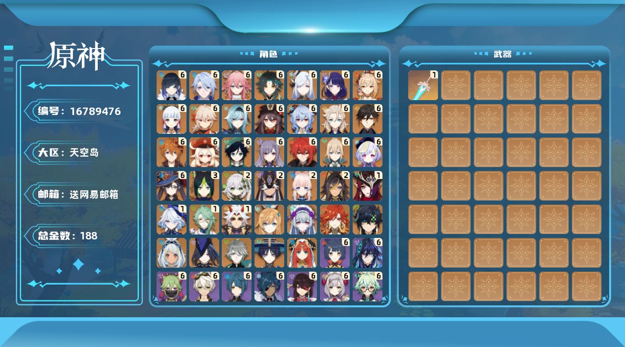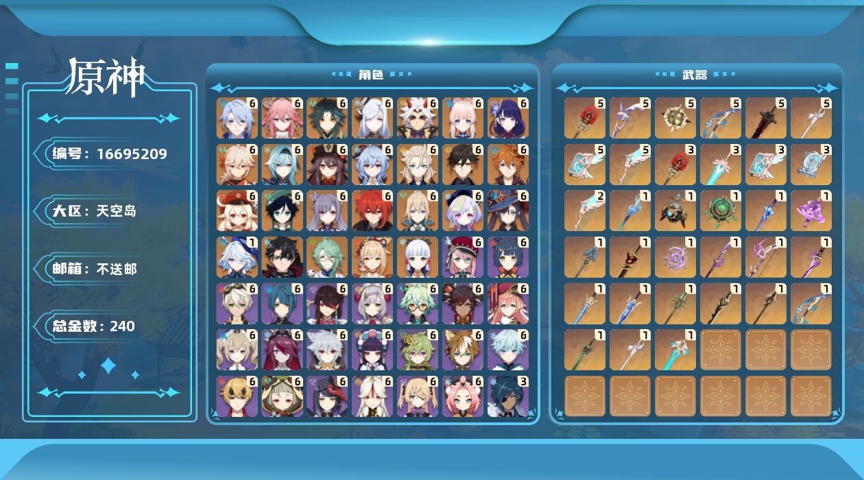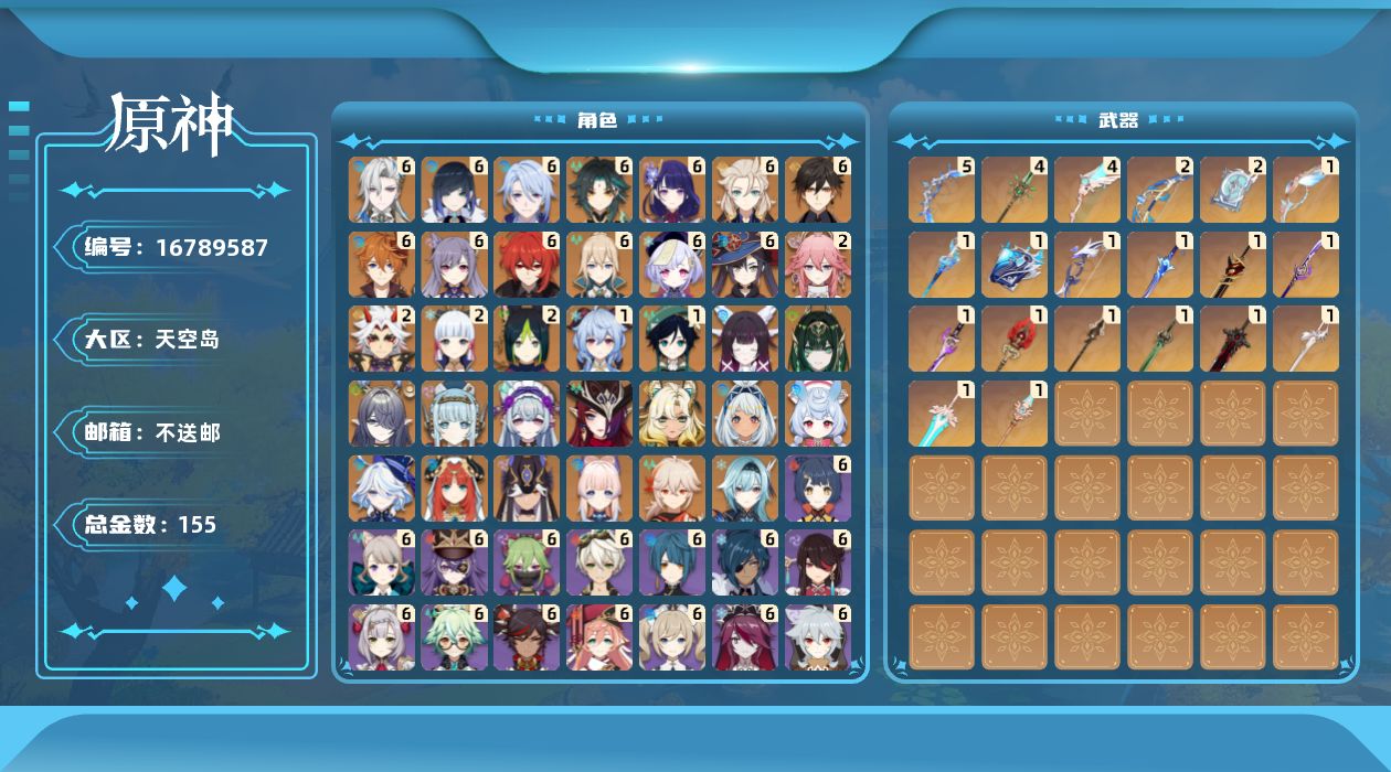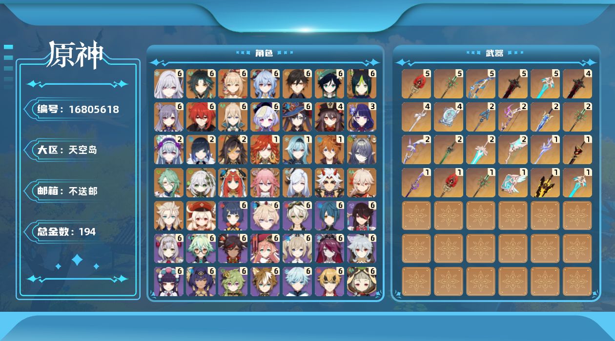 【C264442694】[16805618]0AR50E不送邮/死邮总黄数194角色数量29武器数量22冒险等级60男主