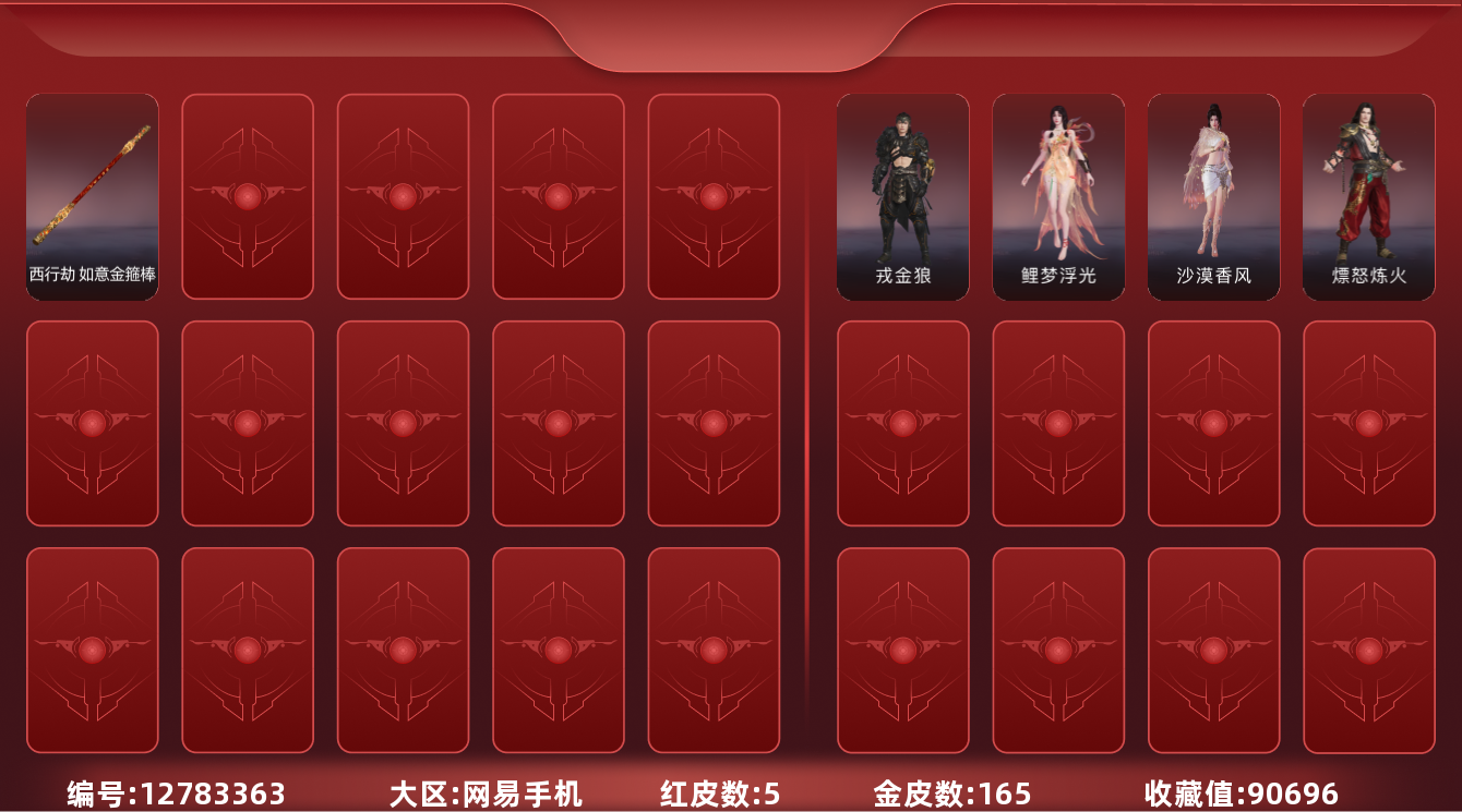 【C2529112446】[12783363]WJ2141,网易手机手游,可换绑,四人段位荧星1,5红,165金,御祥云,如意金箍棒,沙漠香风,戎金狼,鲤梦浮光,熛怒炼火,雷赐,烛龙引,残阳镀,三更令,丹鹤,朱雀,雪魅星尘,朝颜,南山翠暖,冥神,烈豪,杨戬,掌珠仙子,日影花阴,冰链,活动中心手机绑定无法解绑,找回包赔,