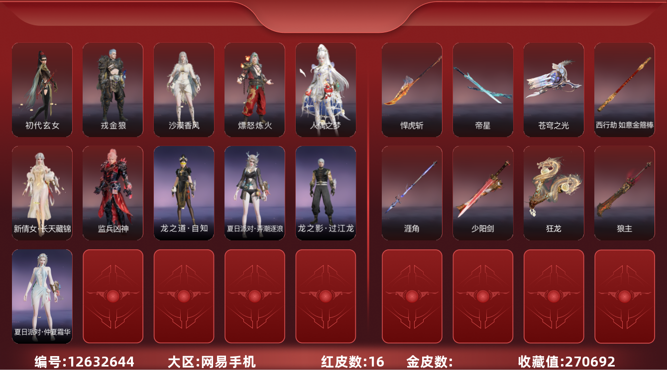 【C2528628507】[12632754]WJ2045,网易手机,11月15可换绑,三人段位蚀月3,金砖1888,2谪星,37红,903金,声望1,谪星2P,谪星化霜弦,2孔,2蓝,神君印,2674初代机,神乌造像,炎烈珠,少阳剑,冰魄,2674九阴,灵狐幻刃,帝星,比羿,龙雀,烈阳,狼主,悍虎斩,飞将戟,涯角,如意金箍棒,天琼,狂龙,惊百里,天罚,苍穹之光,毕方,赤皓新囍,初代玄女,星辉魔纱,长天藏锦,戎金狼,熛怒炼火,樱云天女,泣珠龙纱,香雪水兰,暮光眮丸,绝代风华,沙漠香风,夜魅游莹,通天狐妖,化道者,执明神君,流金晓锦,画中仙,自知,精武魂,至纯,无拘,过江龙,椰风夕照,甜筒兔,午后瑰夏,初夏绯莓,长夏清澜,高校水着,弄潮逐浪,仲夏霜华,昭夏流金,盛夏白阳,赤夏悠漾,半夏晚风,极光夏夜,玉霜龙,亢龙,冷香,2674九阴,拂雪绒,黑绳,烛泪,恶障,断月影,劫涛潮,长虹,幽冥吟,三更令,千堆雪,除岁,天威,虎踞,春水,腓腓,若水尊者,枫行者,兰庭月,瑶光沐月,信手斩龙,醉山川,春桃笑,巨鲸客,玄霜仙兔,寒英素雪,玉叶景,白骨夫人,花无痕,斑斓衣,夜汐,墨行衣,山漠狞影,飞鼠,逆天劫魂花,花海台,木棉,男性发型14,活动中心手机绑定无法解绑,找回包赔,