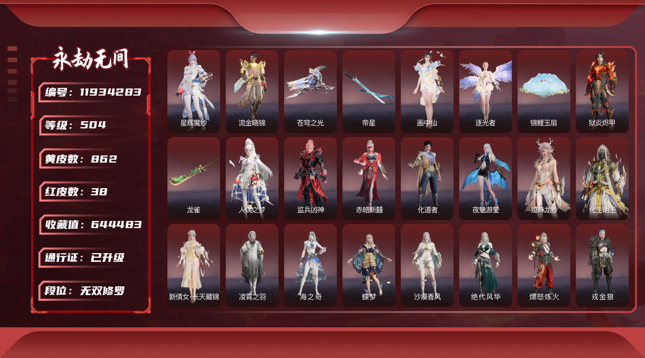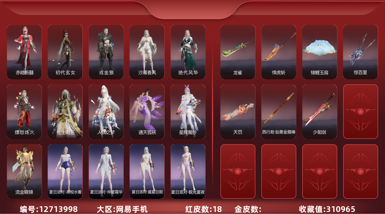 【C2526335741】[11934283]WJ1645,网易手机,10月22可换绑,网易支付无法注销,三人段位无双修罗,2谪星,38红,862金,声望16,等级504||幻丝111112|金砖77|通行证Lv.190,谪星2P,谪星神劫,2孔,1蓝,1紫,变身器:绿野守护竹韵悠,2674初代机,神乌造像,炎烈珠,幻梦鲸彩,神君印,雪霜姿,勾玉,凶虎,夜蔷薇,噬骨,百战枷锁,镇冥司,红色神品:赤皓新囍,初代玄女,星辉魔纱,化生明王,新倩女幽魂·长天藏锦,戎金狼,狱炎烬甲,熛怒炼火,蝶梦,人偶之梦,泣珠龙纱,海之奇,凌霄之羽,绝代风华,沙漠香风,监兵凶神,夜魅游莹,化道者,流金晓锦,逐光者,画中仙,天罚,苍穹之光,毕方,麒麟魄,少阳剑,帝星,龙雀,烈阳,狼主,飞将戟,涯角,西行劫·如意金箍棒,天琼,锦鲤玉扇,逆晦朔,狂龙,惊百里,角色金色皮肤:谪星·2P,倒反阴阳·炽羽,开辟鸿蒙·山川润,拳皇·夏尔美,夜华朝,自动人形·2B,耀世魂花,玄豹姿,紫金玉女,红川仙子,雪山天女,P5R·奥村春NOIR,云溪仙子,绿野守护·悠竹萌客,楚韵九歌·山鬼,绮云衫,观山海·腓腓,西行劫·紫衣仙子,龙之道·至纯,活动中心手机绑定无法解绑,找回包赔,
