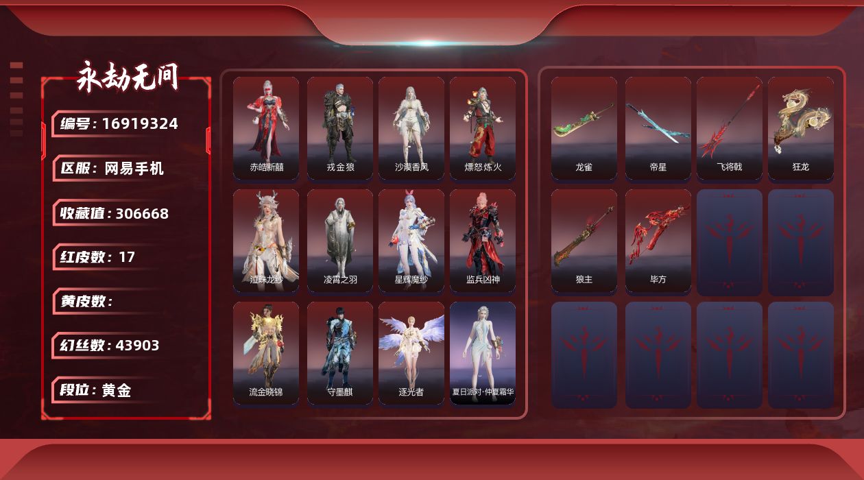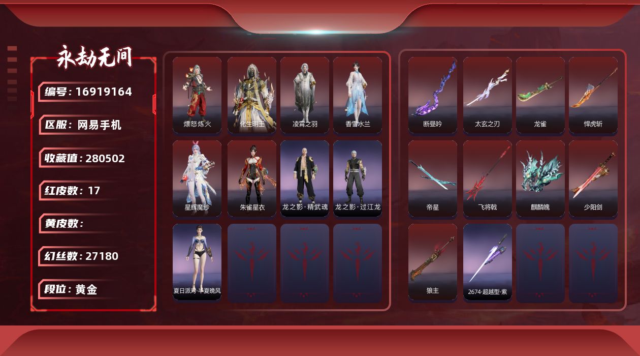 【C266271157】[17308186]WJ5110,网易手机,4月3可换绑,三人段位黄金4,20红,546金,声望2,雪霜姿,绿野守护竹韵悠,夜蔷薇,四海,凶虎,彩俑娃娃,剪纸彩刀,麒麟魄,少阳剑,太玄之刃,帝星,龙雀,飞将戟,狂龙,惊百里,天罚,苍穹之光,初代玄女,星辉魔纱,化生明王,戎金狼,熛怒炼火,蝶梦,沙漠香风,执明神君,逐光者,画中仙,无拘,过江龙,求真,高校水着,西瓜棒冰,午后瑰夏,初夏绯莓,仲夏霜华,盛夏白阳,赤夏悠漾,半夏晚风,苍雷破,财神剑,醉花风,鎏金勺,尽春锋,斩银河,星辉环月,竹霹雳,云朵咩咩,炽羽,少林,鹅黄纱梦,康复之星,敖丙,金戈止,祸津素盏,云间影,飞鼠,木棉,活动中心手机绑定无法解绑,