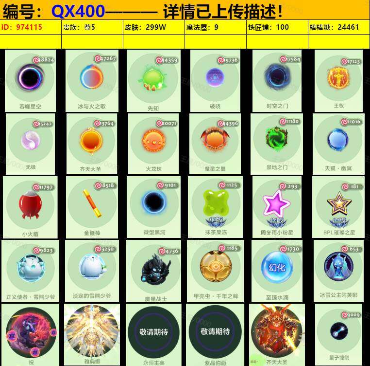 18赛季老号,尊5,满级大圣差一个大棒(免责申明,账号可能存在限时皮肤,体验卡,会员,到期情况,这种情况不可避免,此种情况不属于描述不符!!!请买家看主图搜索ID进游戏确认好在下单,防止后面扯皮)/凤求凰/冰与火之歌/胖胖飞船/星之彩/幽冥墨龙/魔星之翼/吞噬星空/破晓/王权/先知/量子缠绕/禁地之门/天狐·幽冥/时空之门/齐天大圣/无极/超新星守护/火龙珠/冰雪公主阿芙娜/魔星战士/至臻水滴/淡定的雪熊少爷/会飞的红猪侠/炫冰果冻/金箍棒/抹茶/微型黑洞/小火箭/雅典娜/匠神之力/永恒主宰/紫晶伯爵/祝