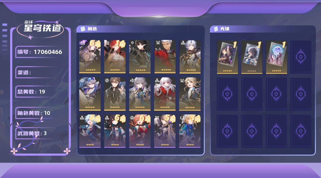 【5星角色12个】0命缇宝,0命大黑塔,0命星期日,0命灵砂,0命知更鸟,0命花火,0命真理医生,0命符玄,0命彦卿,0命姬子,0命布洛妮娅,0命Archer,