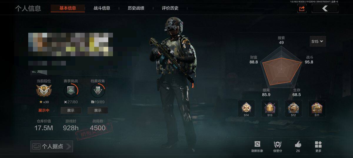 【C2531503684】【AQD4】等级:30/段位:暗区传说/仓库价值(百万):17.5/柯恩币:69445/热能武器·补牢/瀚星斩铁