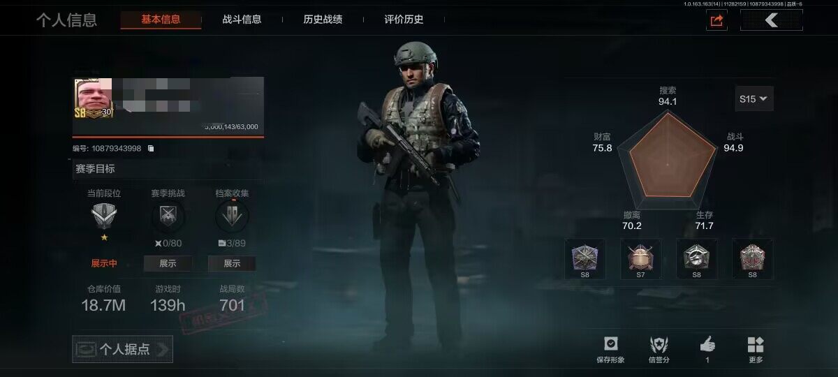 【C2533202141】【AQD22】等级:30/段位:王牌/仓库价值(百万):0.8/柯恩币:617192/苍穹利爪