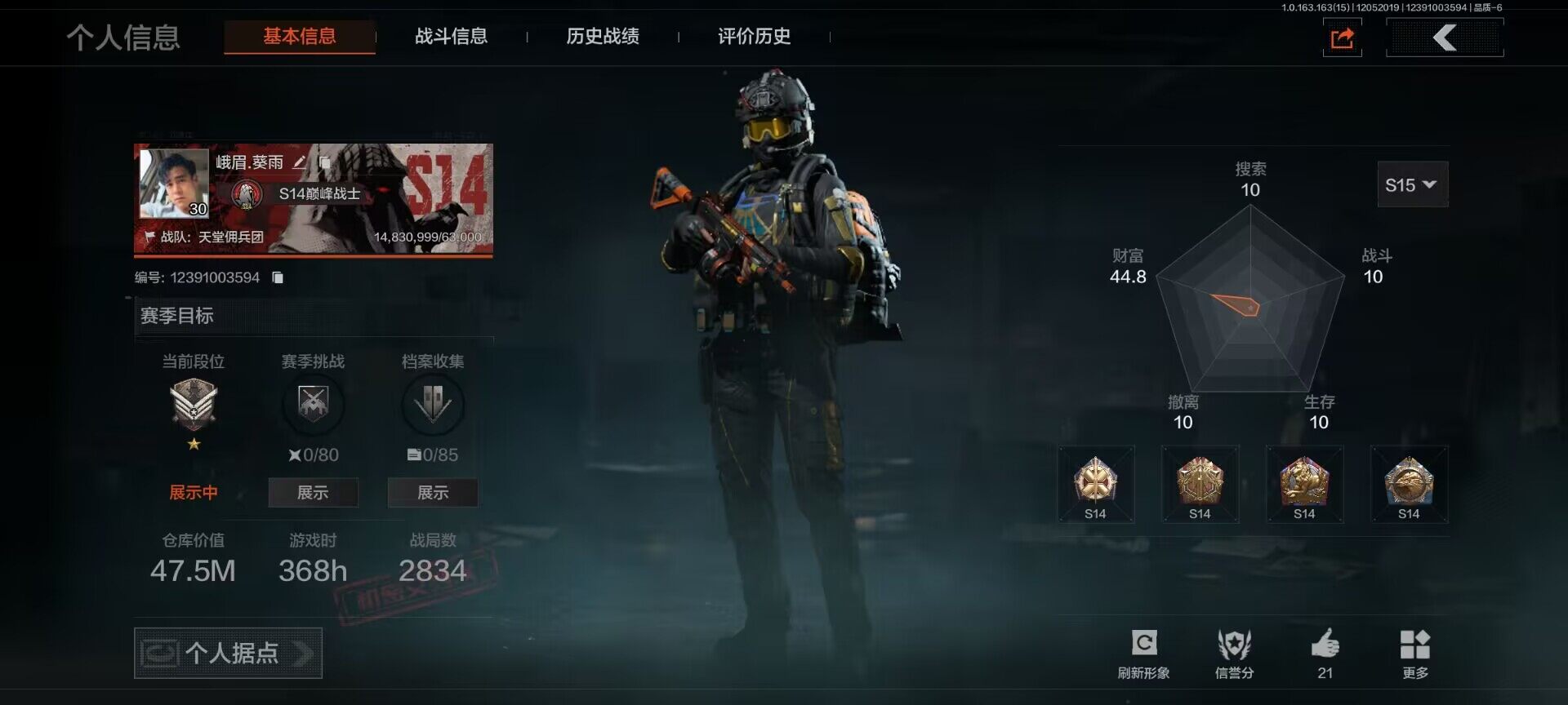 【C2533961014】【AQZG621】等级:30/段位:新锐/仓库价值(百万):4.1/柯恩币:319047/赢家匕首