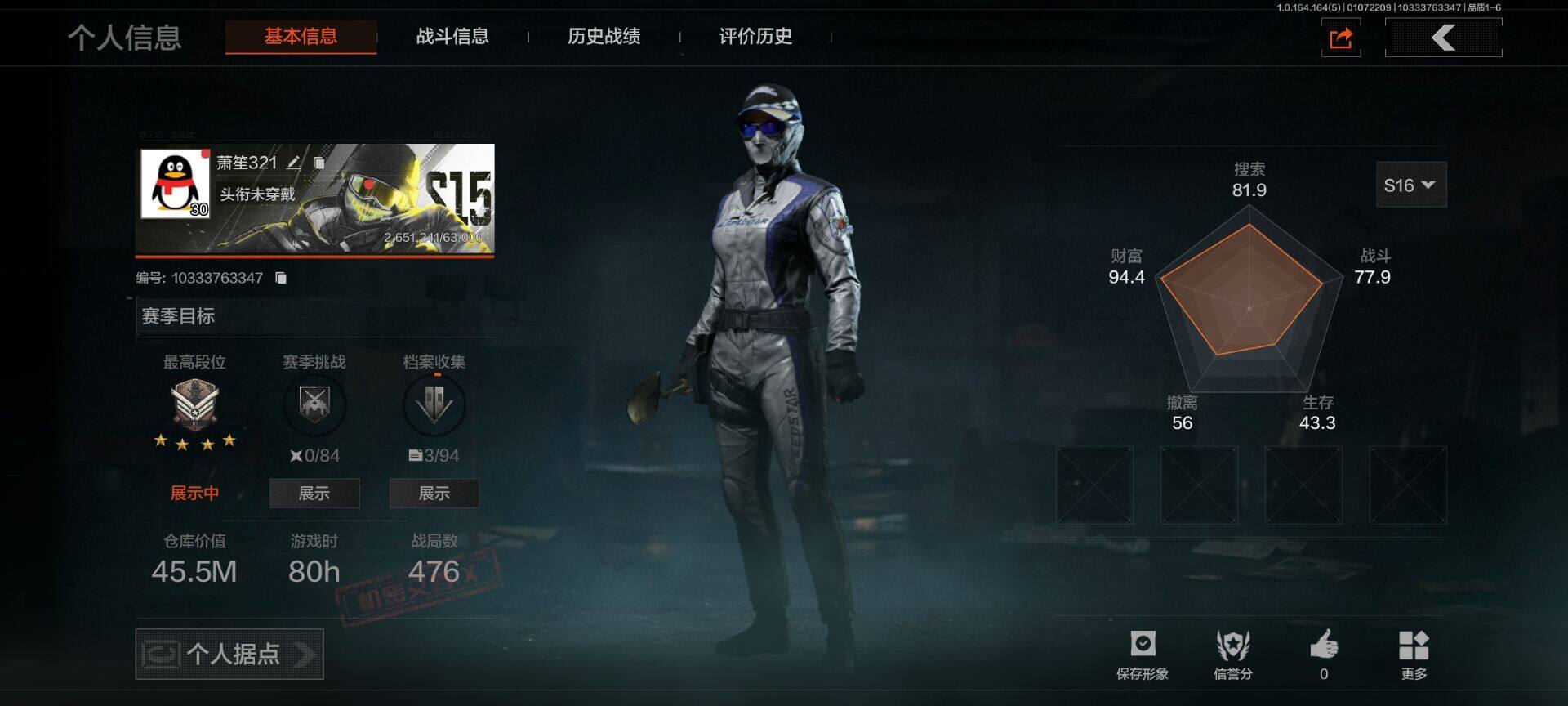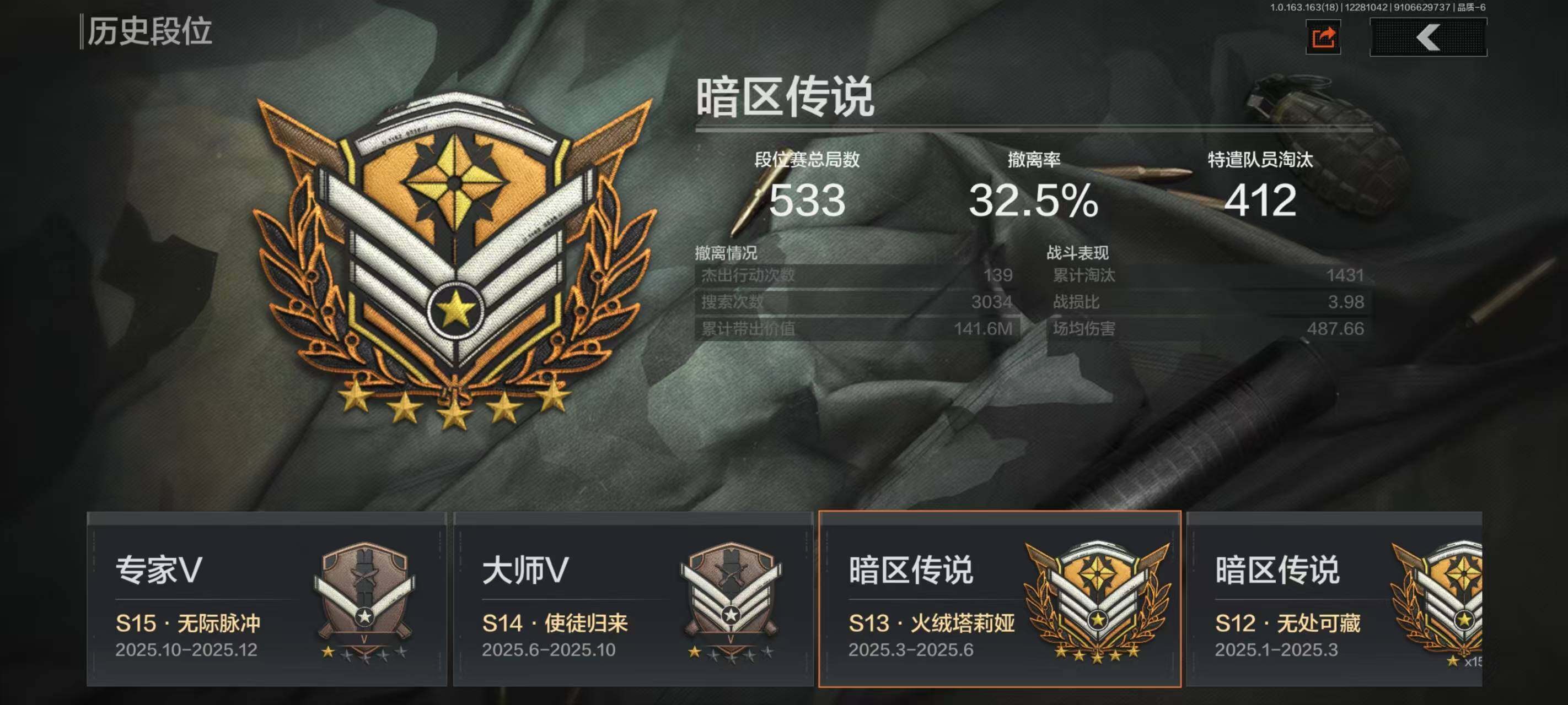 【C26768216】【AQQH232】段位:王牌/急袭手套/瑞兔折刀/霜狼生存刀/赢家匕首/急袭弯刀/下弦月/工兵铲/脉冲马克西姆/火绒塔莉娅/噤声者吉利服/深潜行者II/伦琴幻影FAL/战术大师·AK102/旗帜AEK/战术大师AEK/旧王圣谕QBZ191/战术大师AN94/利齿风暴MPX