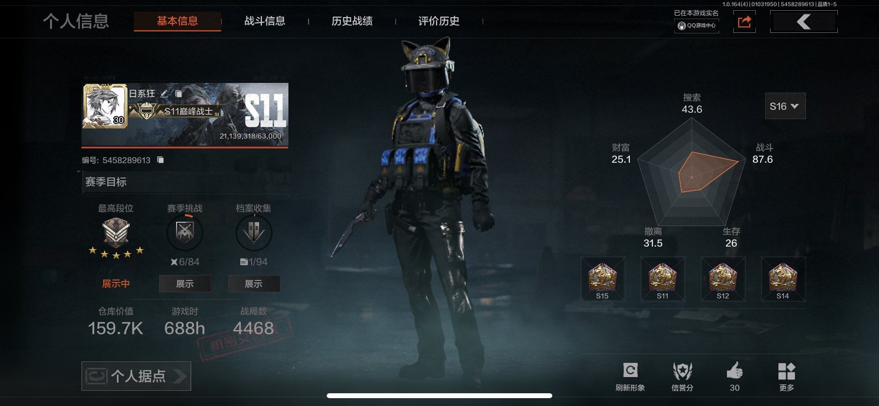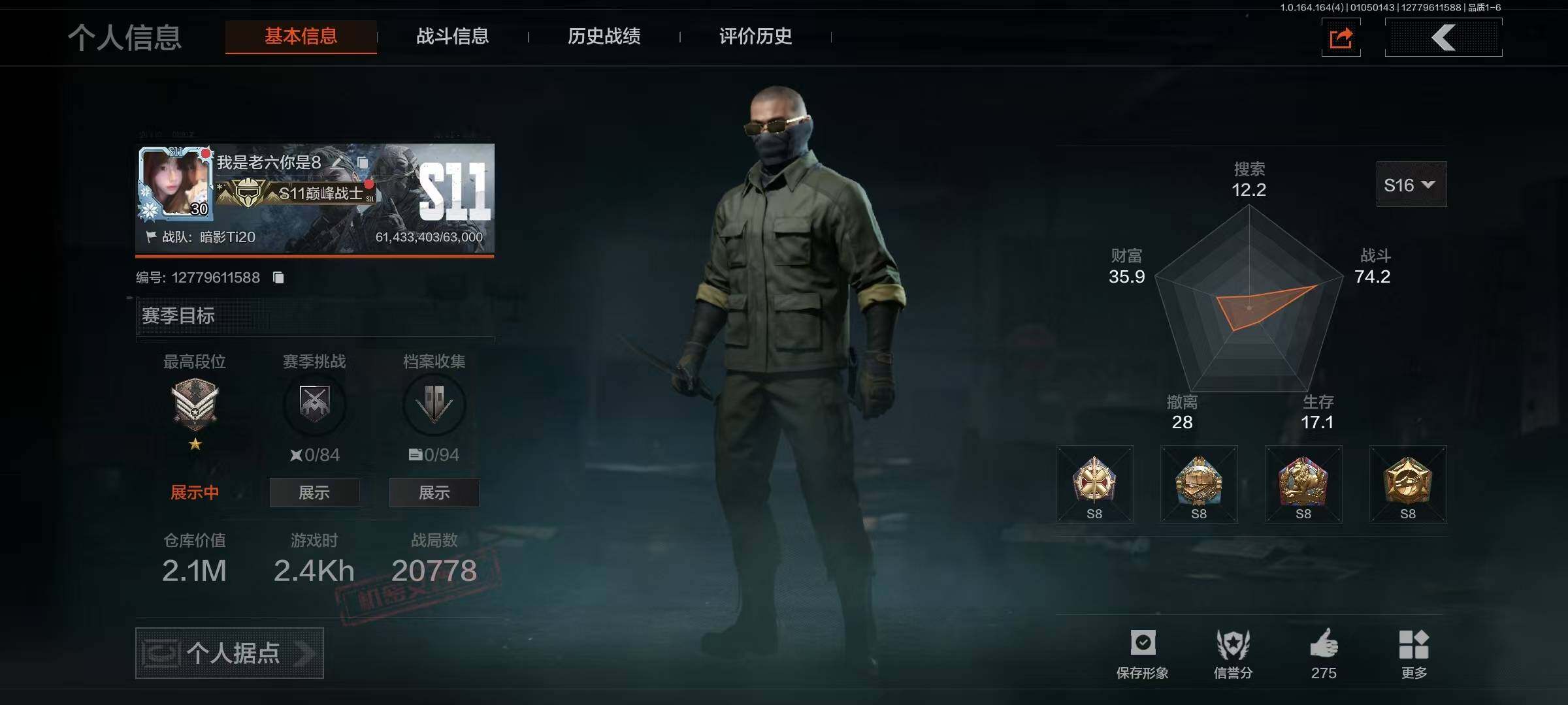 【C26495220】【AQN81】段位:大师/仓库价值(百万):121.3/柯恩币:2970/来战·开山刀