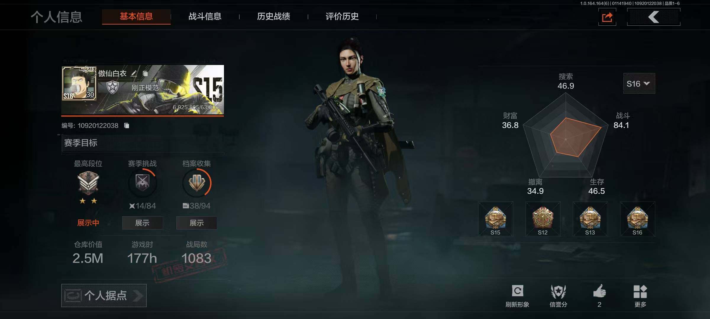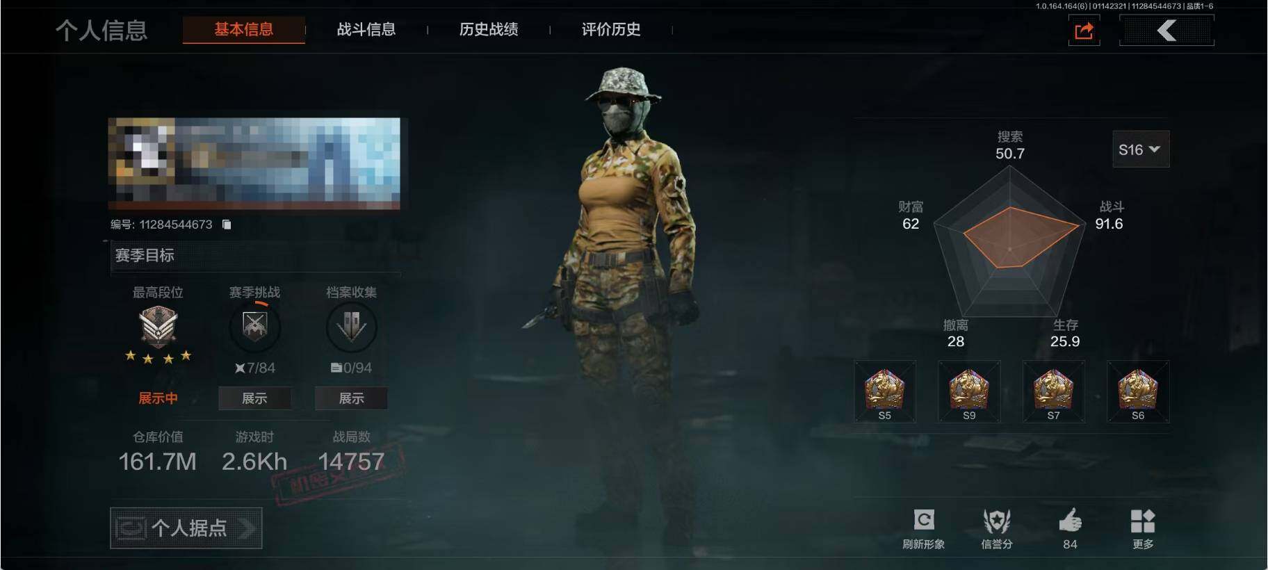 【C261476032】【AQD127】段位:专家/仓库价值(百万):1/柯恩币:1/赢家匕首/浮鳞影青QBZ192/告丧夜曲AUG/骑士之剑VSS/骑士典范艾尔熙德