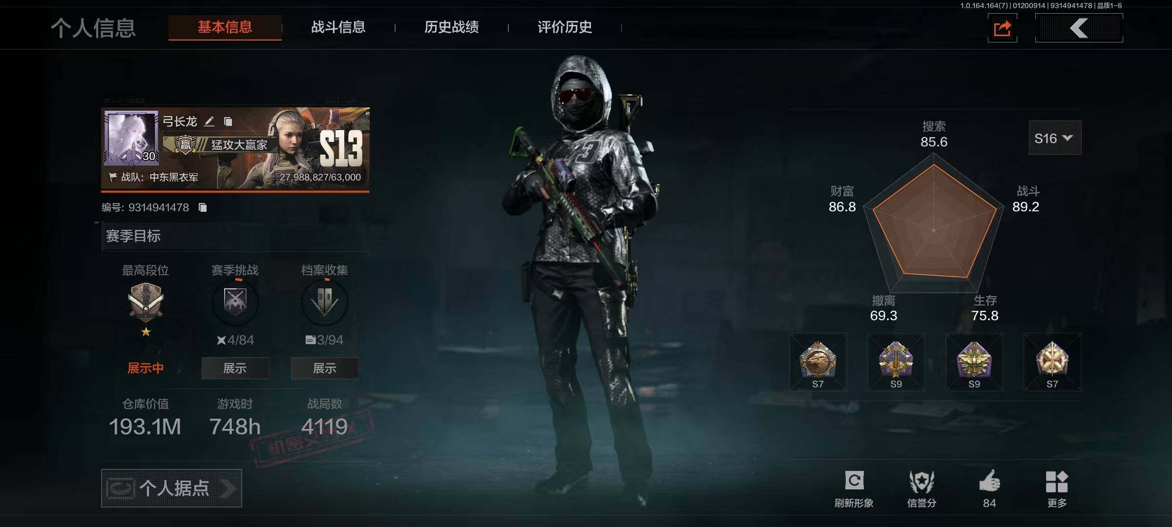 【C261817997】【AQN108】段位:大师/仓库价值(百万):9.2/急袭弯刀