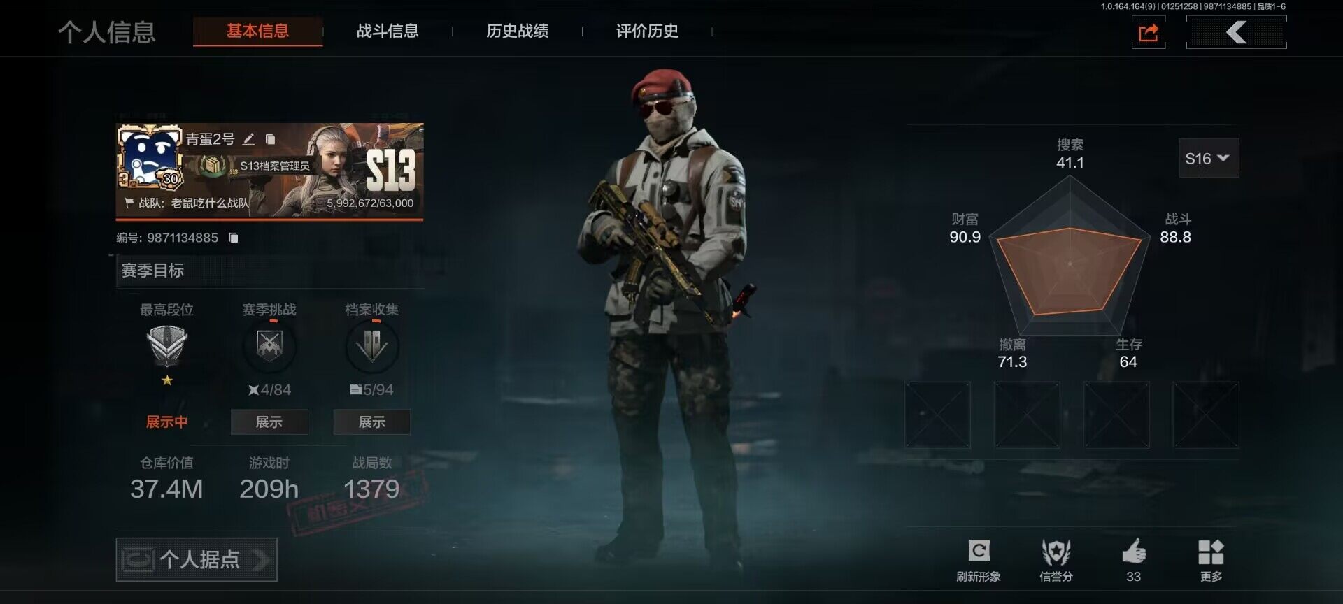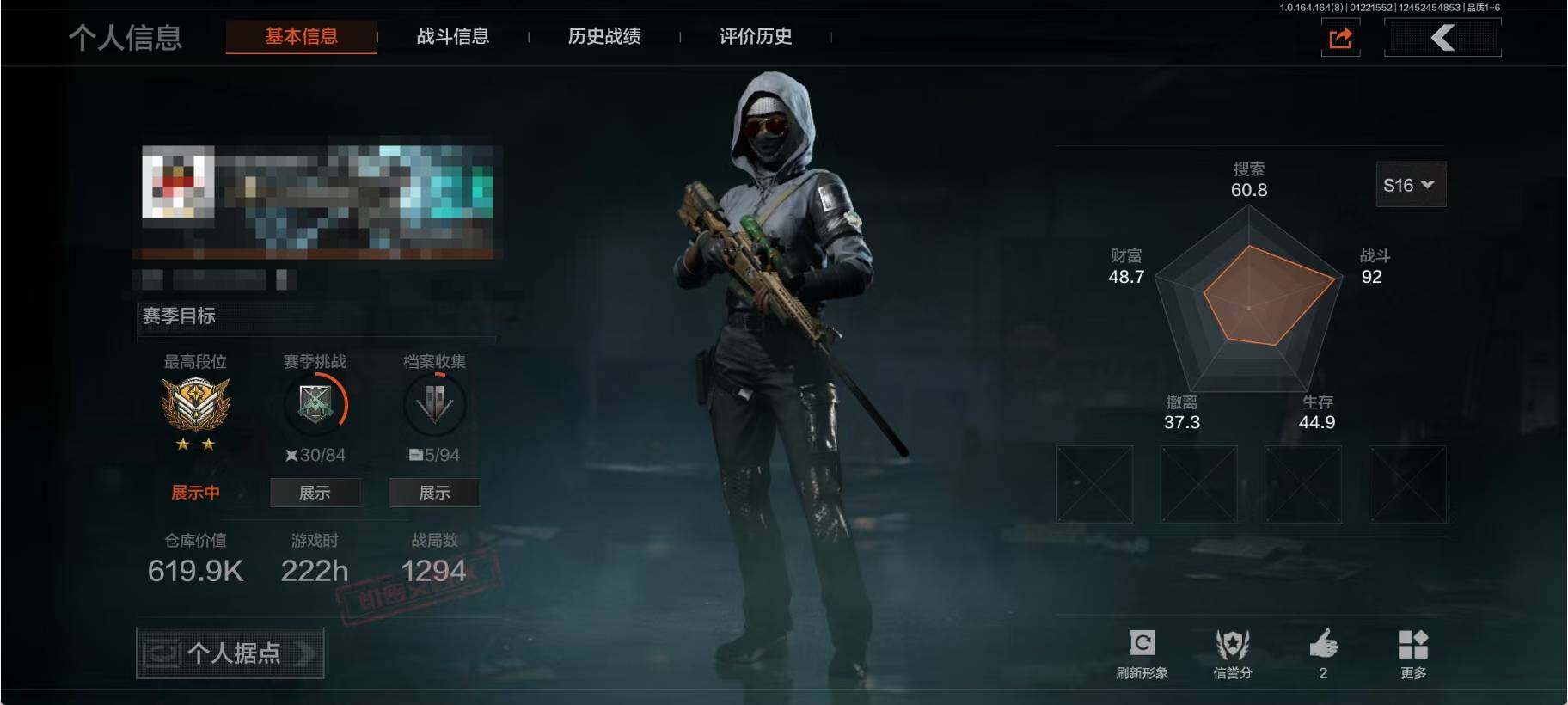 【C261002449】【AQN98】等级:30/段位:暗区传说/仓库价值(百万):2.7/柯恩币:1827/明刀·绣春