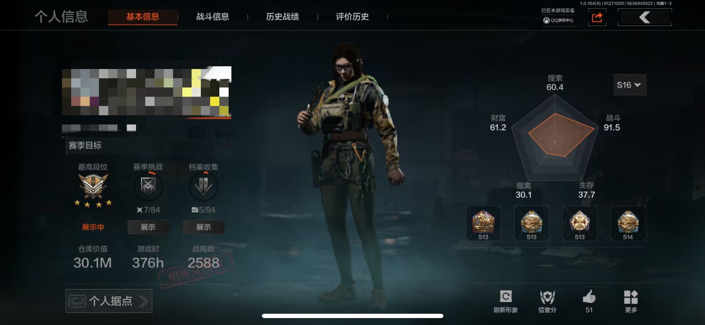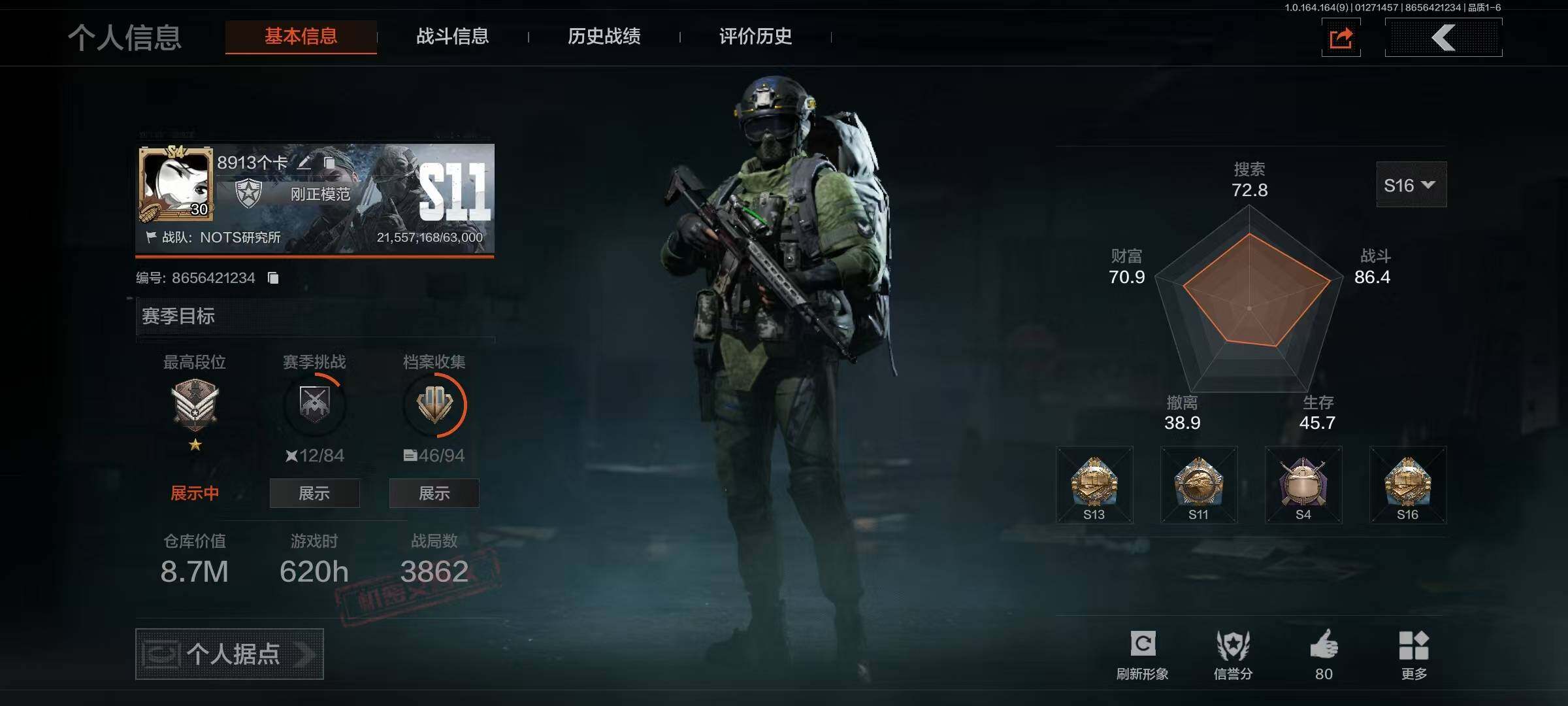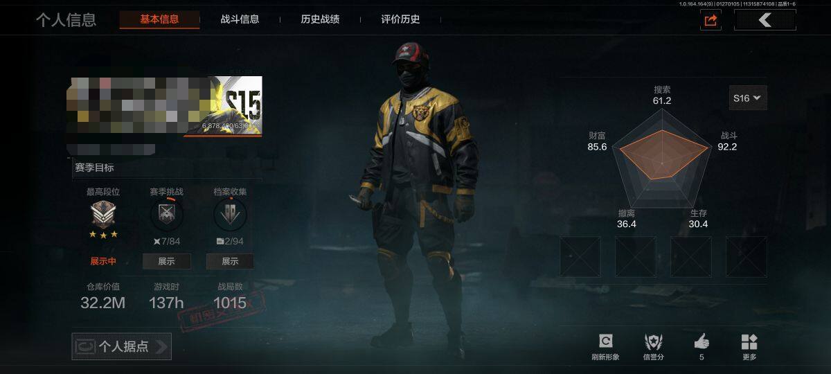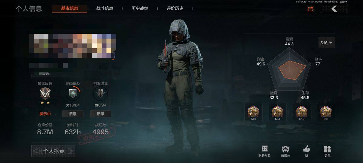 【C262620828】【AQQH336】段位:大师/仓库价值(百万):8/精英指虎/寒牙手刺