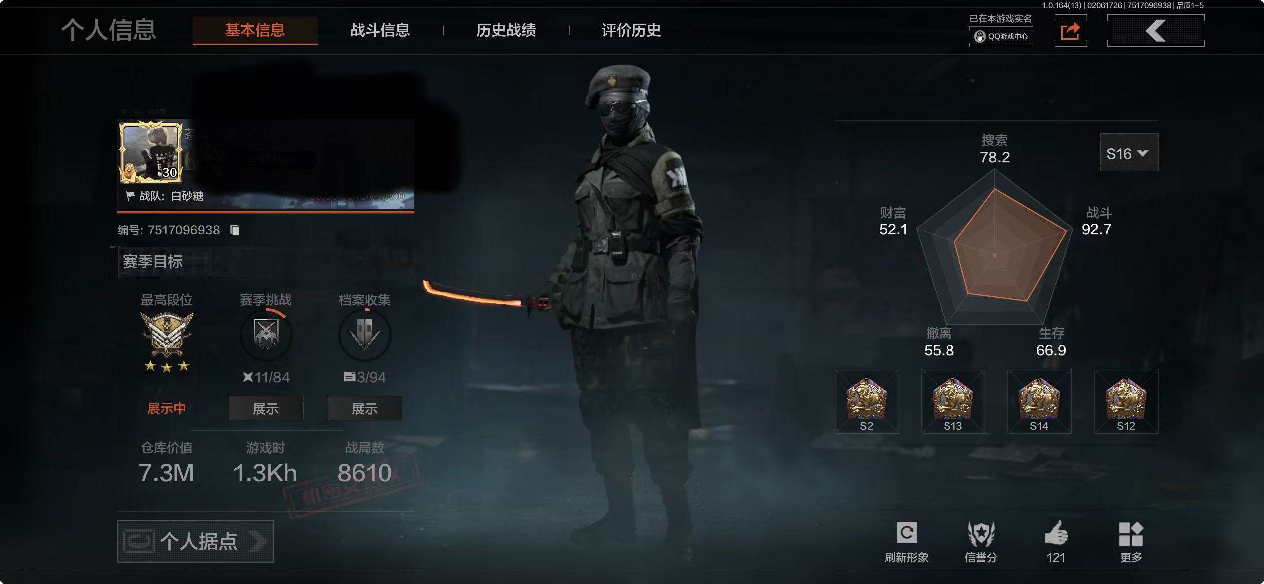 【C263745992】【AQN136】等级:30/段位:王牌/仓库价值(百万):7.3/工兵铲/突击匕首/热能武器补牢
