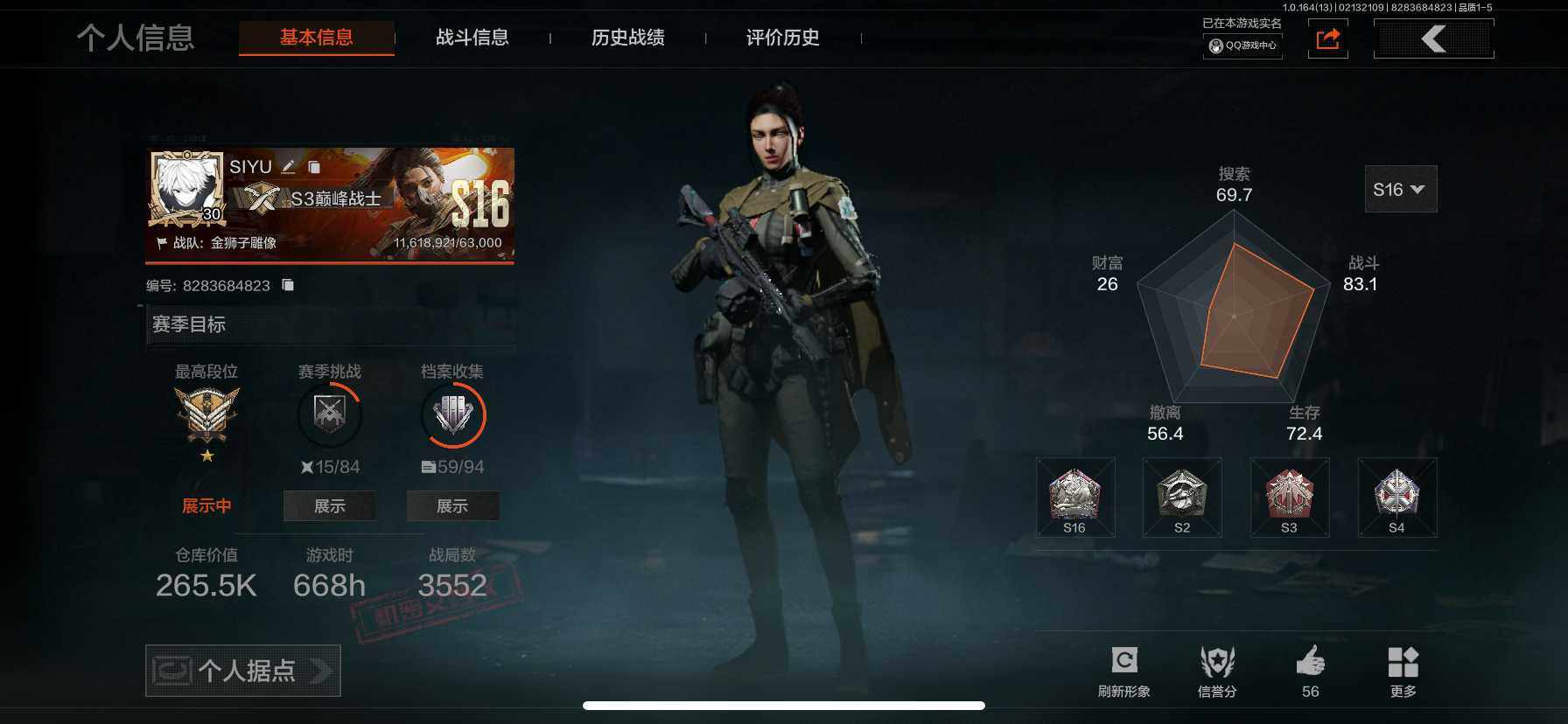 【C264250245】【AQN155】等级:30/段位:王牌/柯恩币:121917/工兵铲/来战·开山刀/突击匕首