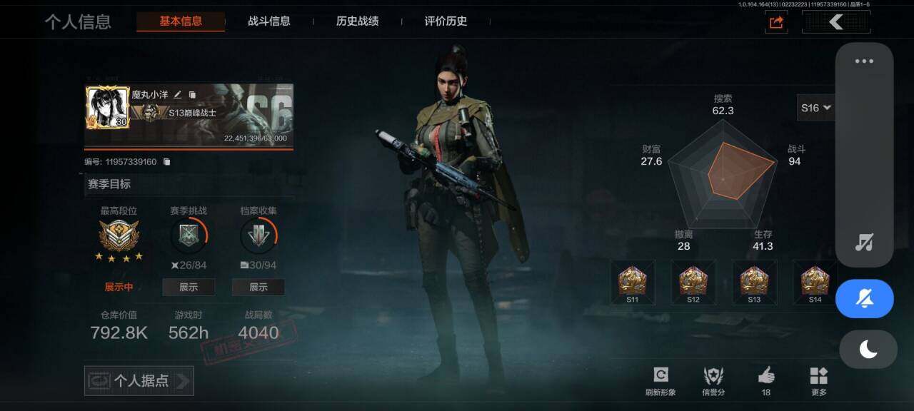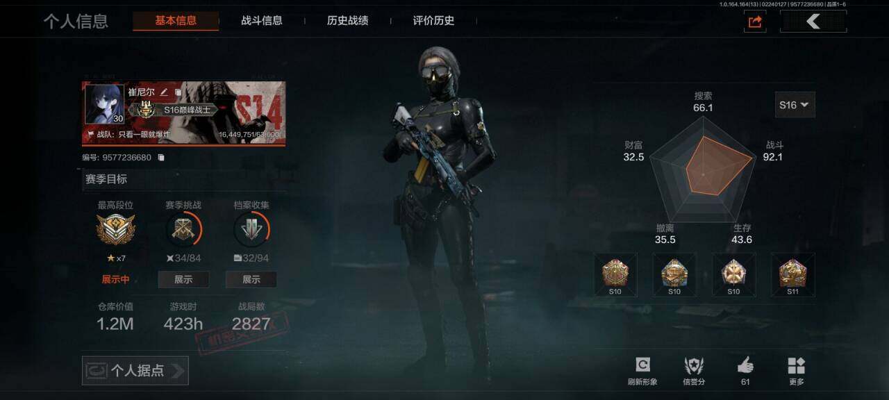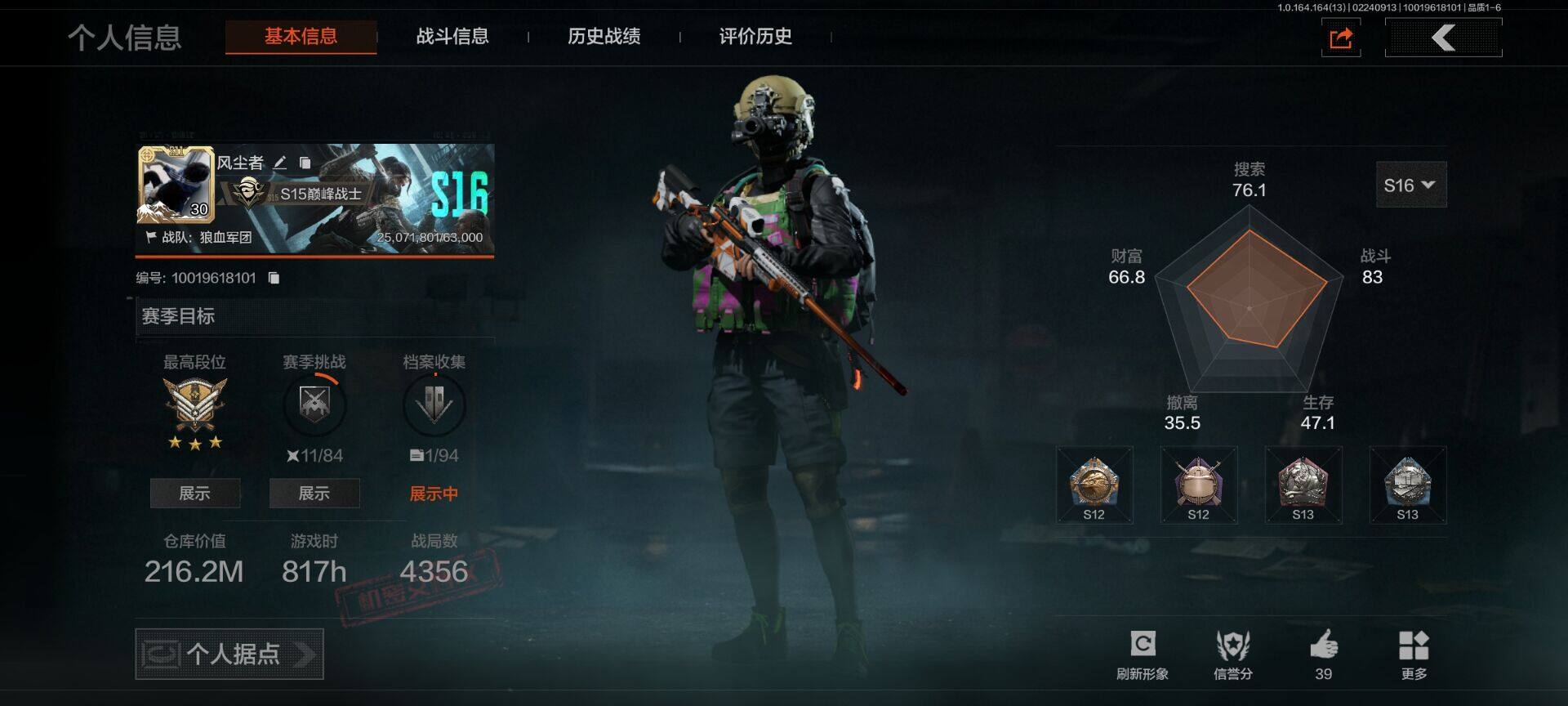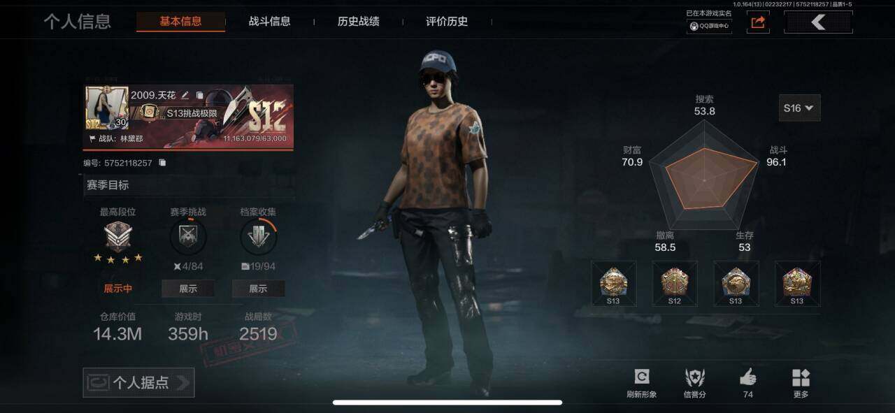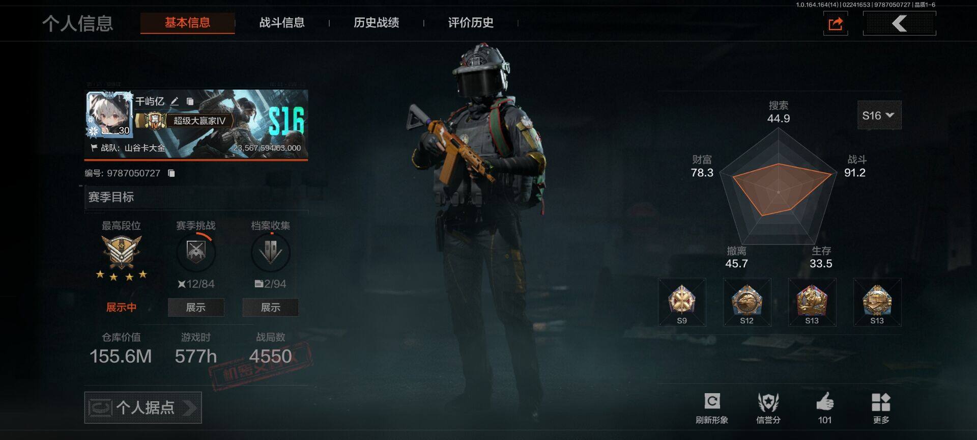 【C265431432】【AQQH647】段位:王牌/仓库价值(百万):155/S-07折刀