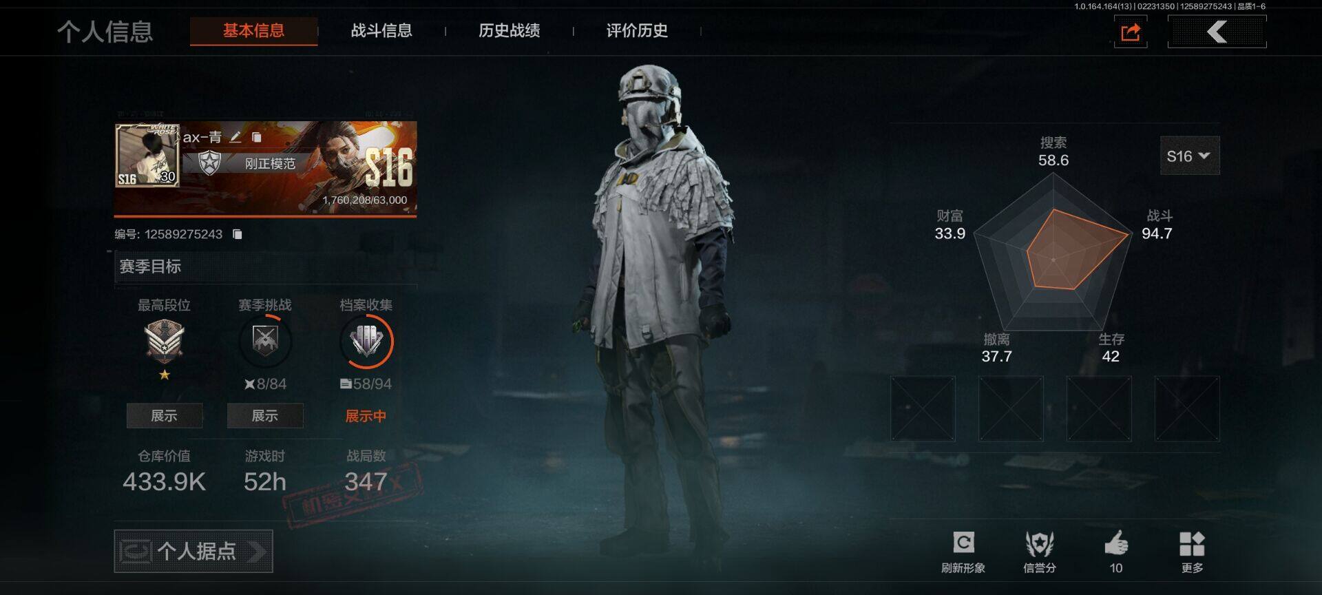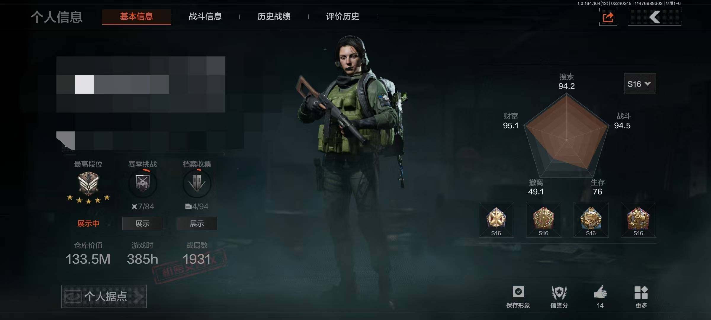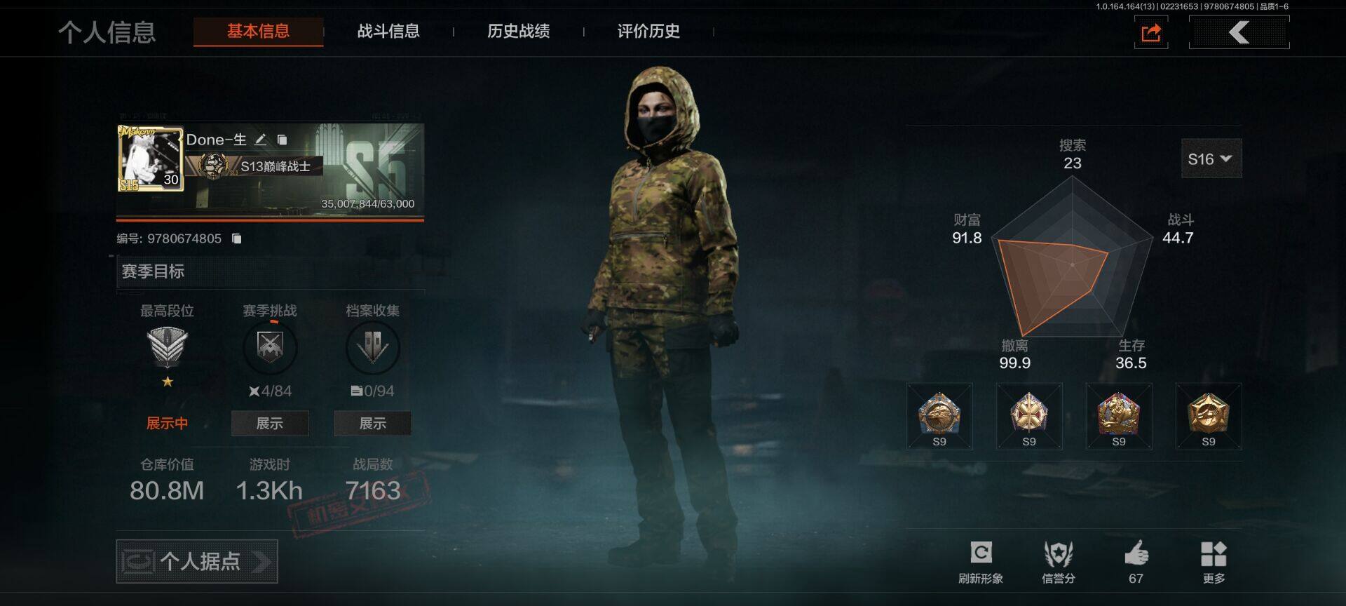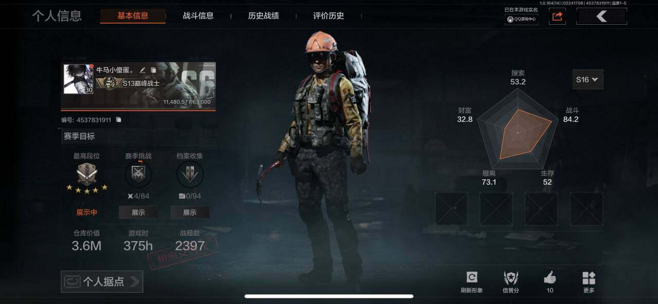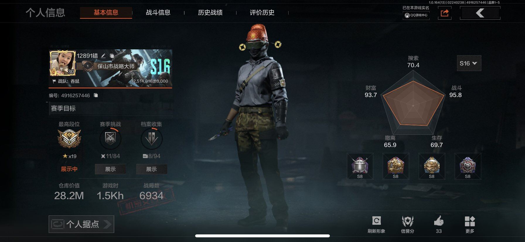 【C265431432】【AQQH647】段位:王牌/仓库价值(百万):155/S-07折刀