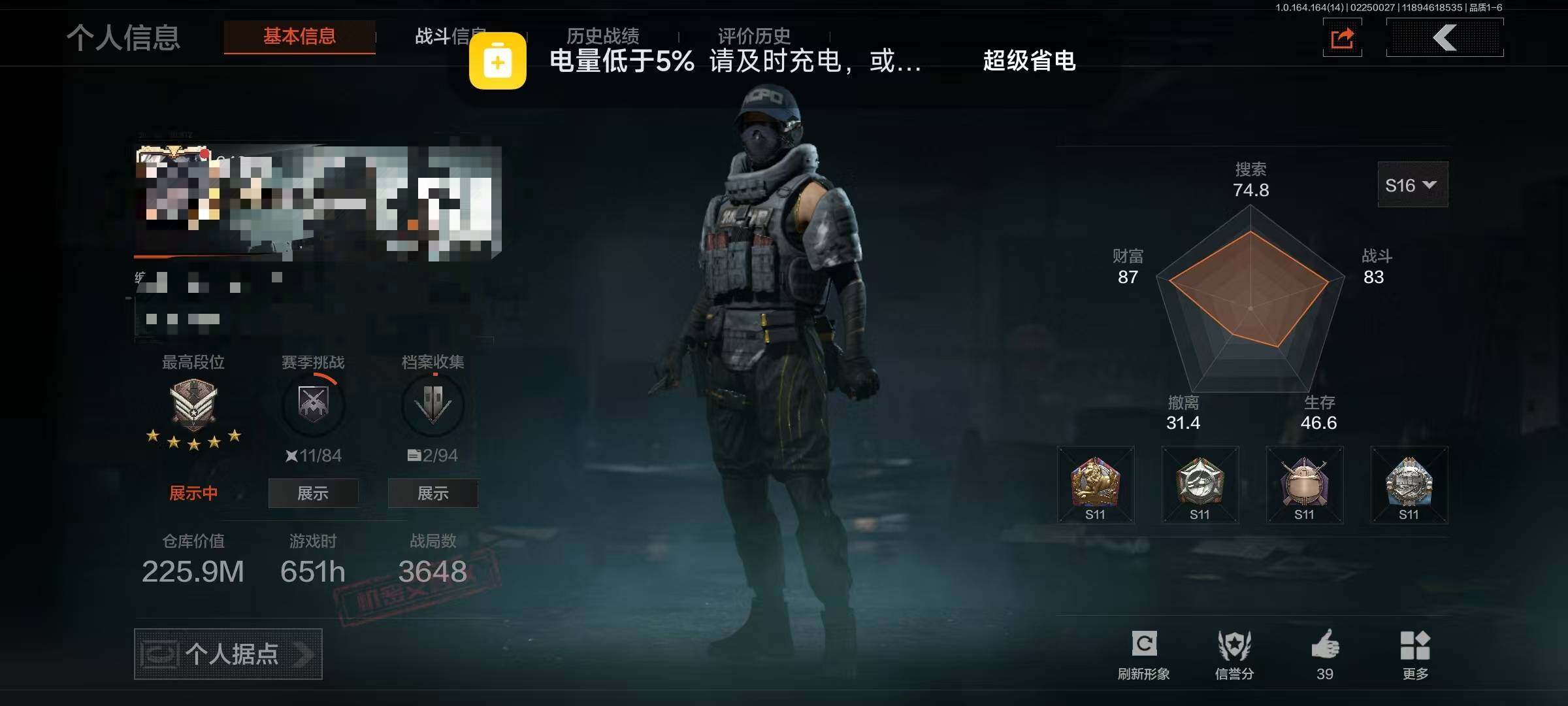 【C265537842】【AQZG1470】段位:王牌/仓库价值(百万):7.1/激流手套/急袭弯刀/盘牙彻甲短刃/蝮蛇/弗雷德/苍白隐者伪装服/林中人·特遣作战服/机车朋克战衣/长夜千军武将