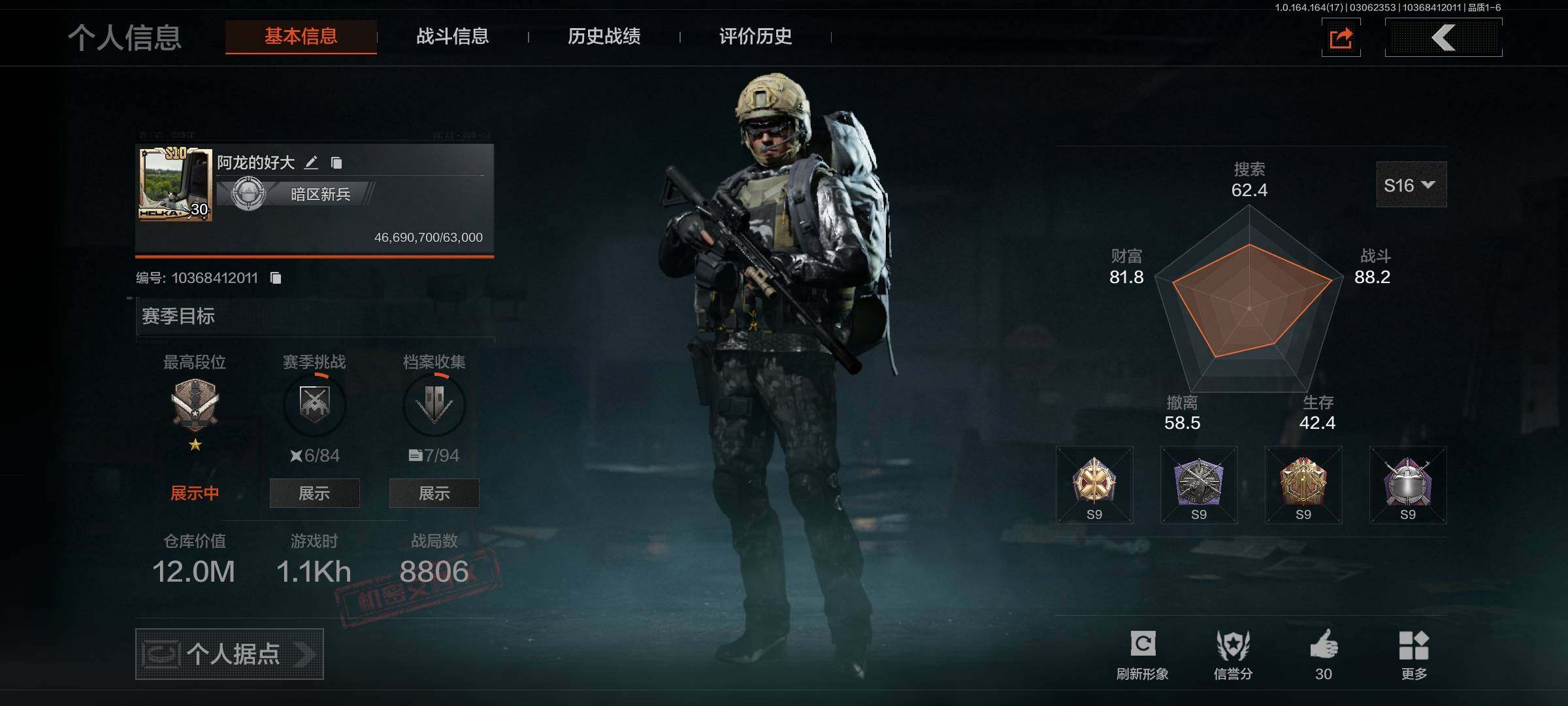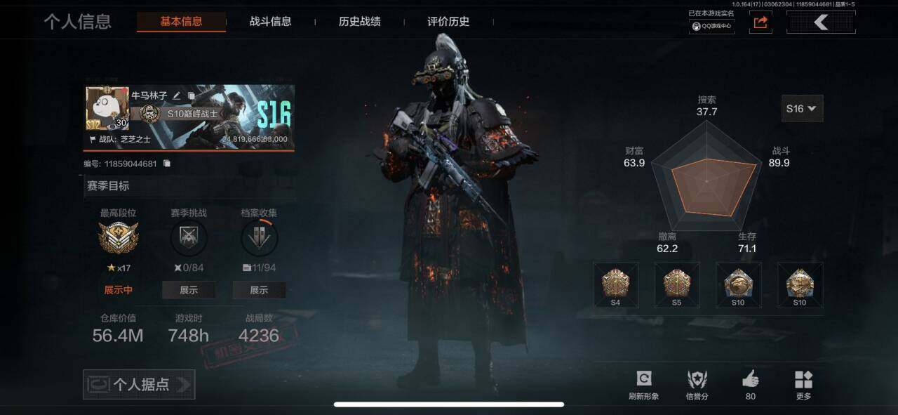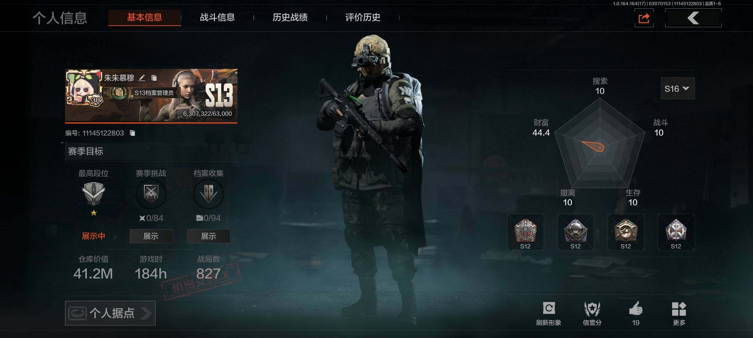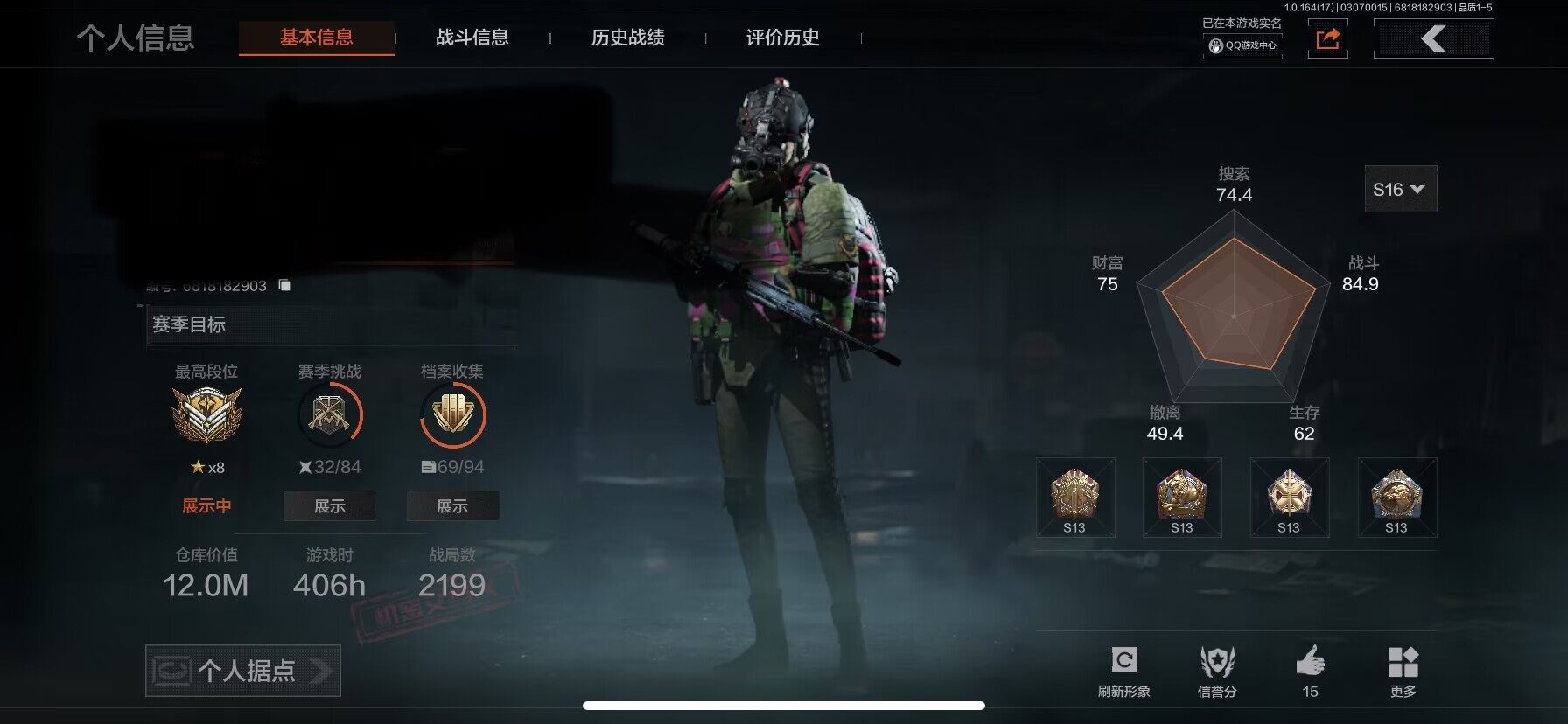 【C266537318】【AQQH758】段位:新锐/仓库价值(百万):41.2/钢铁壁垒作战服/旗帜AEK/伦琴幻影FAL/旧王圣谕QBZ191/旧王圣谕VSS