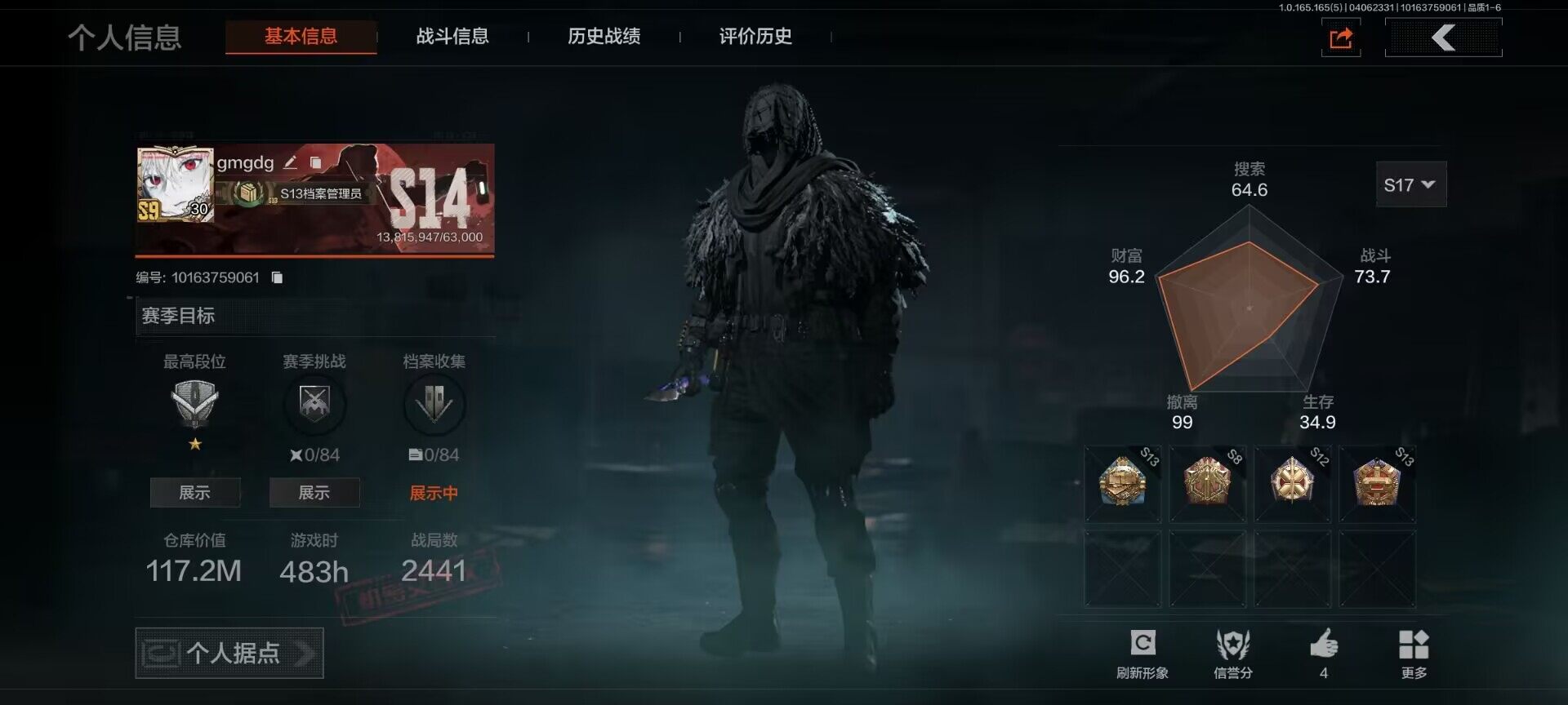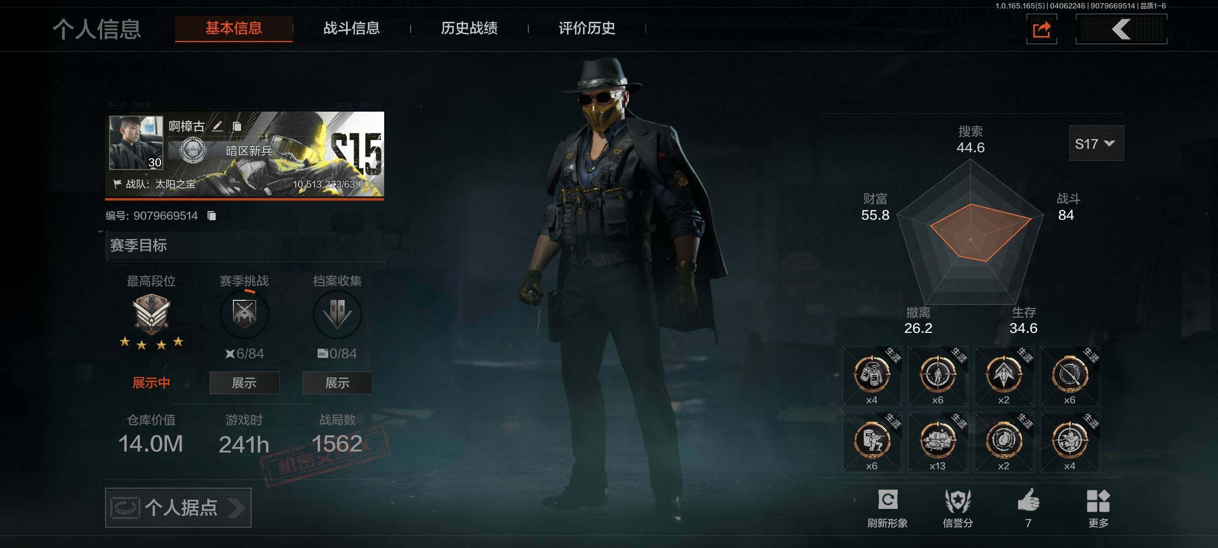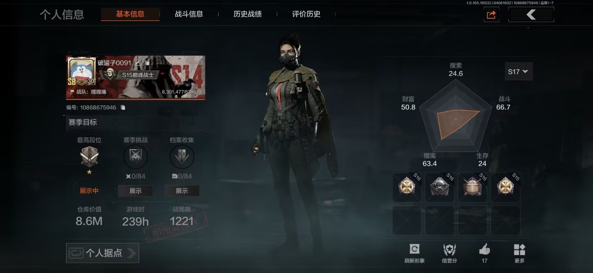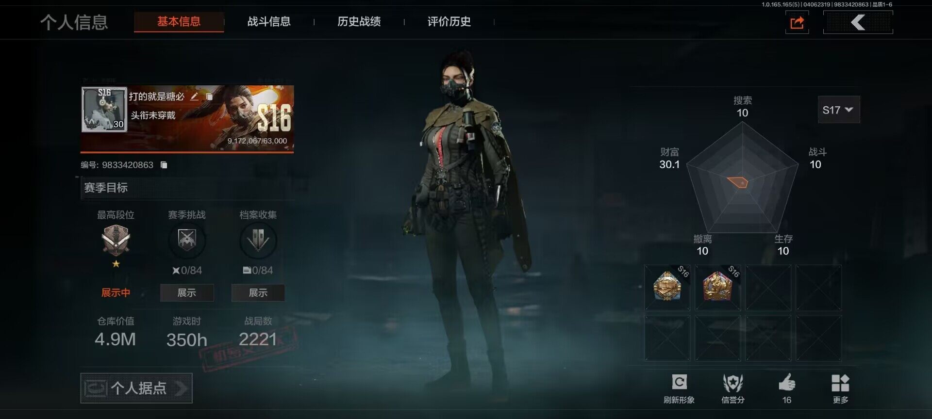 【C269633075】【AQZG2087】等级:30/段位:大师/仓库价值(百万):1.7/柯恩币:614774/赤火炉心/蝮蛇/苍白隐者伪装服/长夜千军武将
