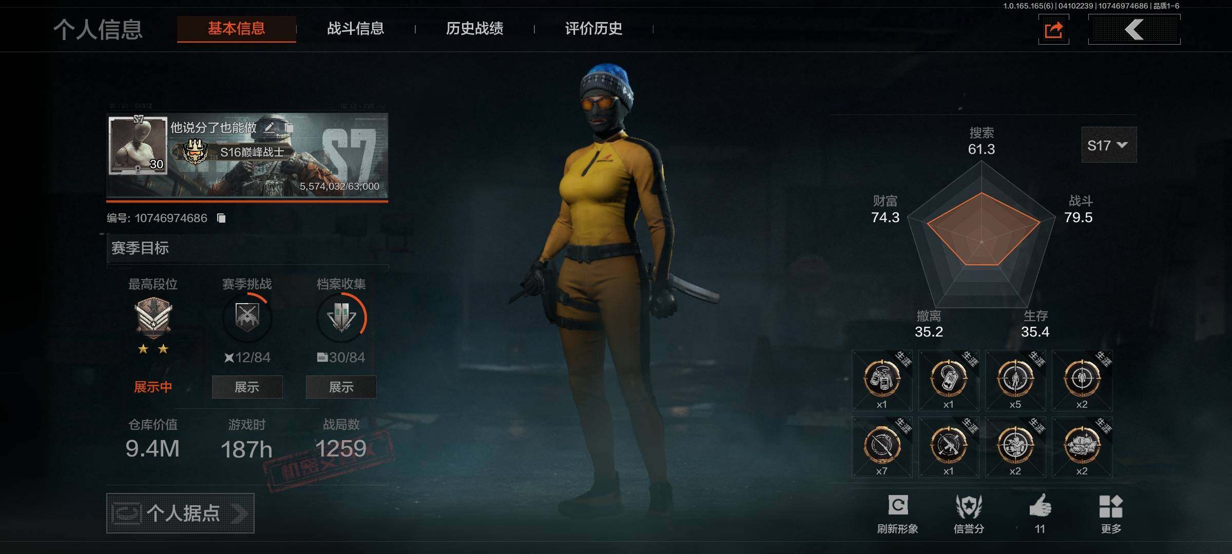 【C2610031416】【AQQH1197】段位:新锐/仓库价值(百万):9.4/过江龙·武术手套/战术甲胄·防护手套/工兵铲/龙魂·双截棍/明刀·绣春/龙魂武术运动服/战术甲胄/近卫荣誉RPK16/战术大师·VSS/黑金弹头P90/黄金·AK74N/镀火熔金H416