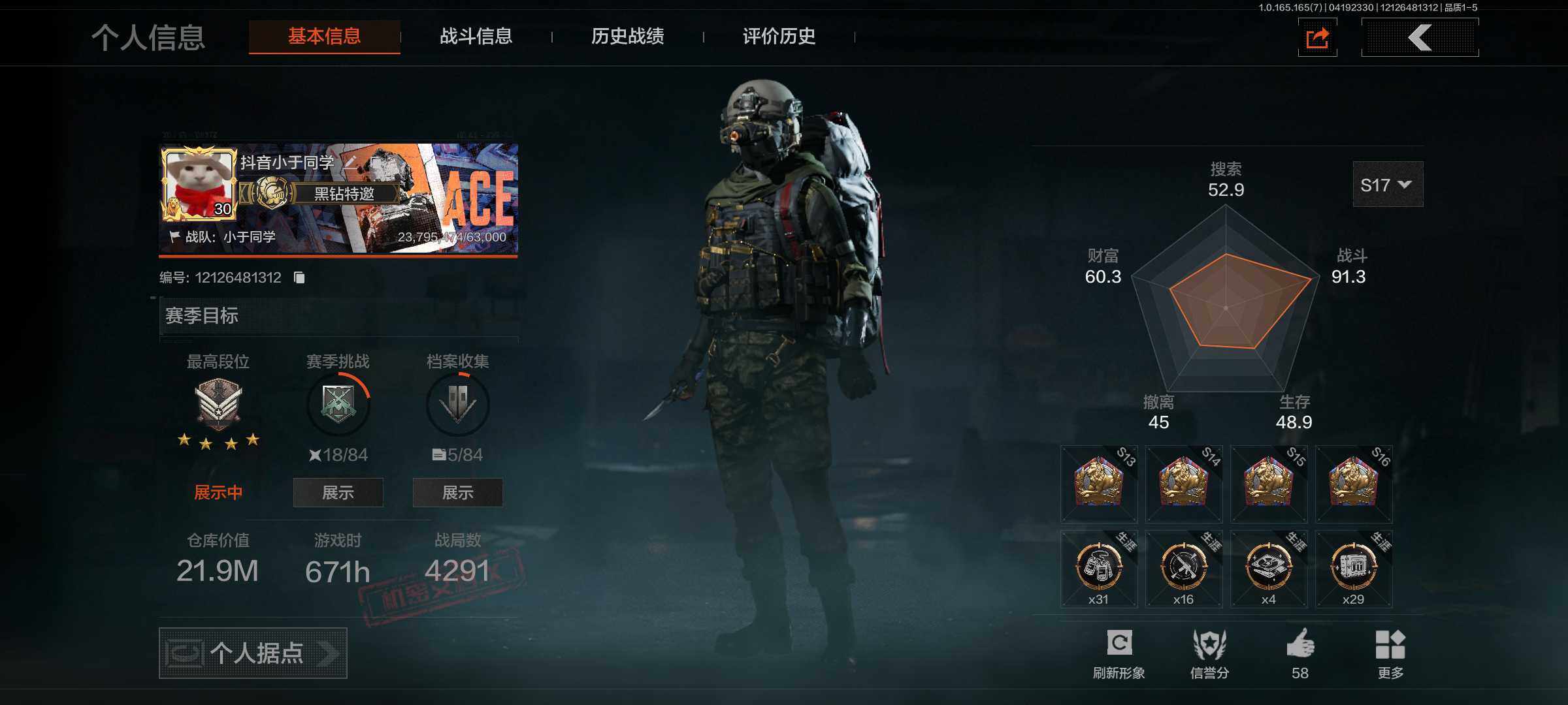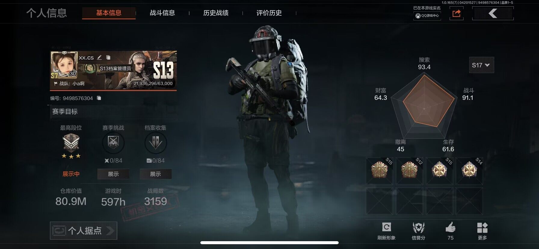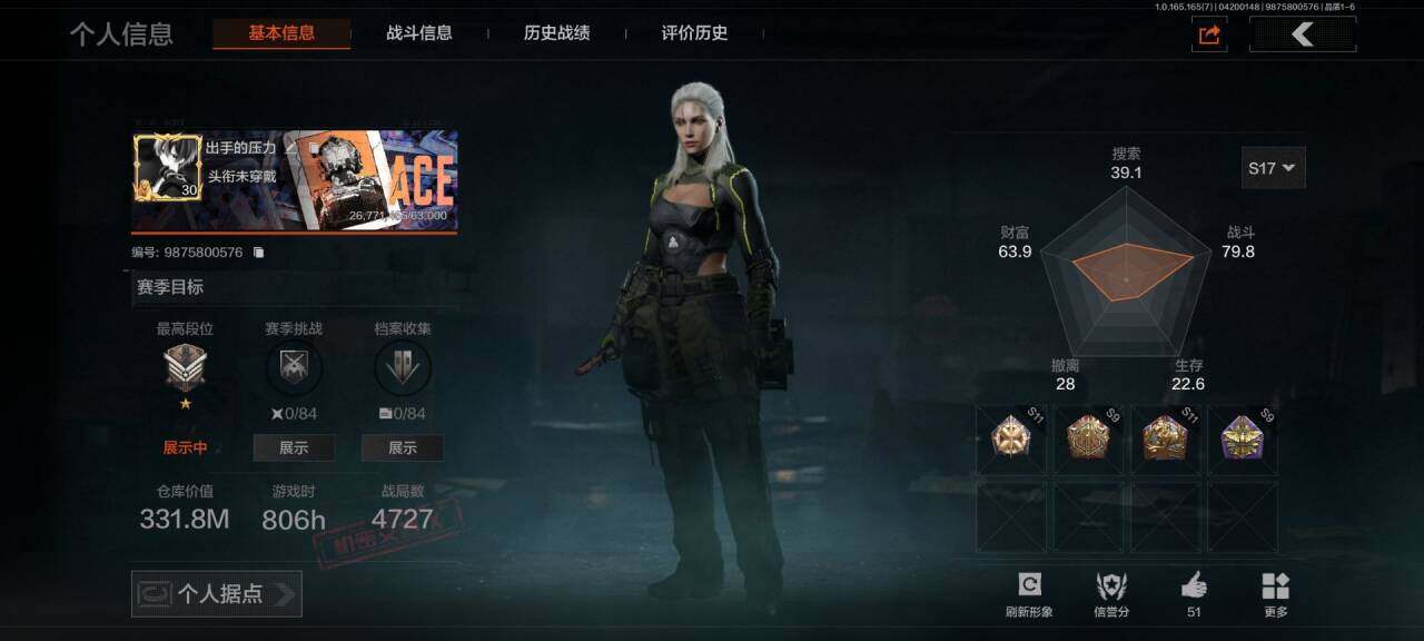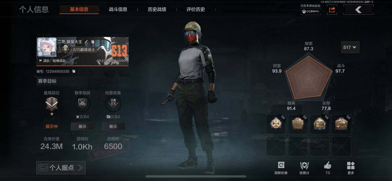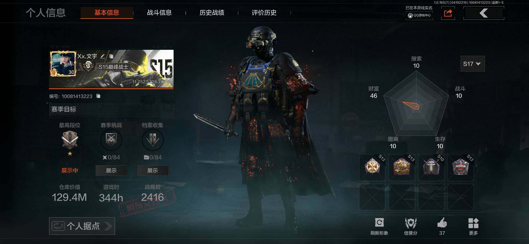 【C2610999343】【AQQH1283】等级:30/段位:新锐/仓库价值(百万):331.8/柯恩币:119000000/瑞兔折刀/急袭弯刀/赢家匕首/白蔷薇斯黛拉/火绒塔莉娅/长夜千军武将