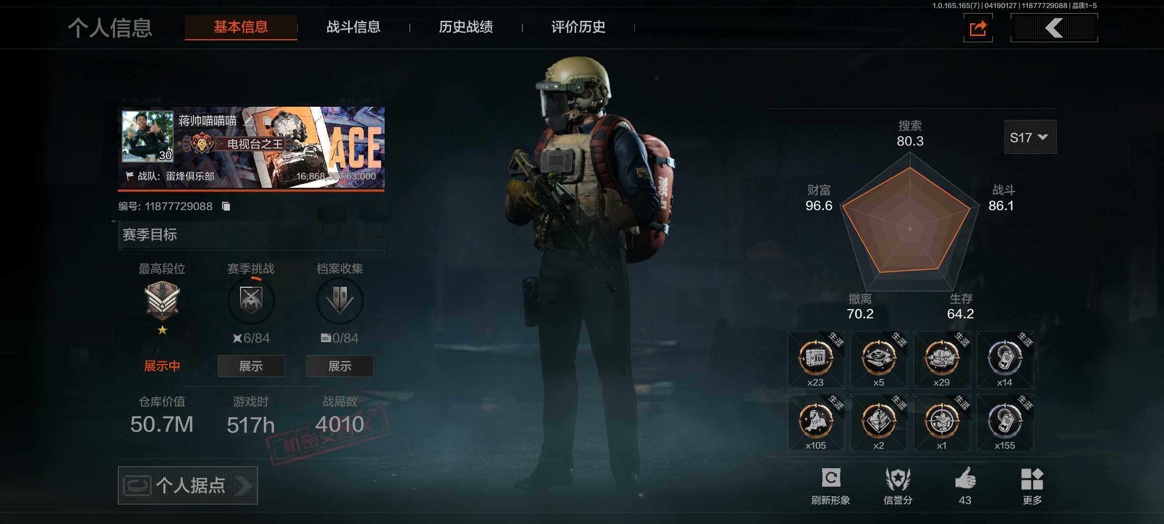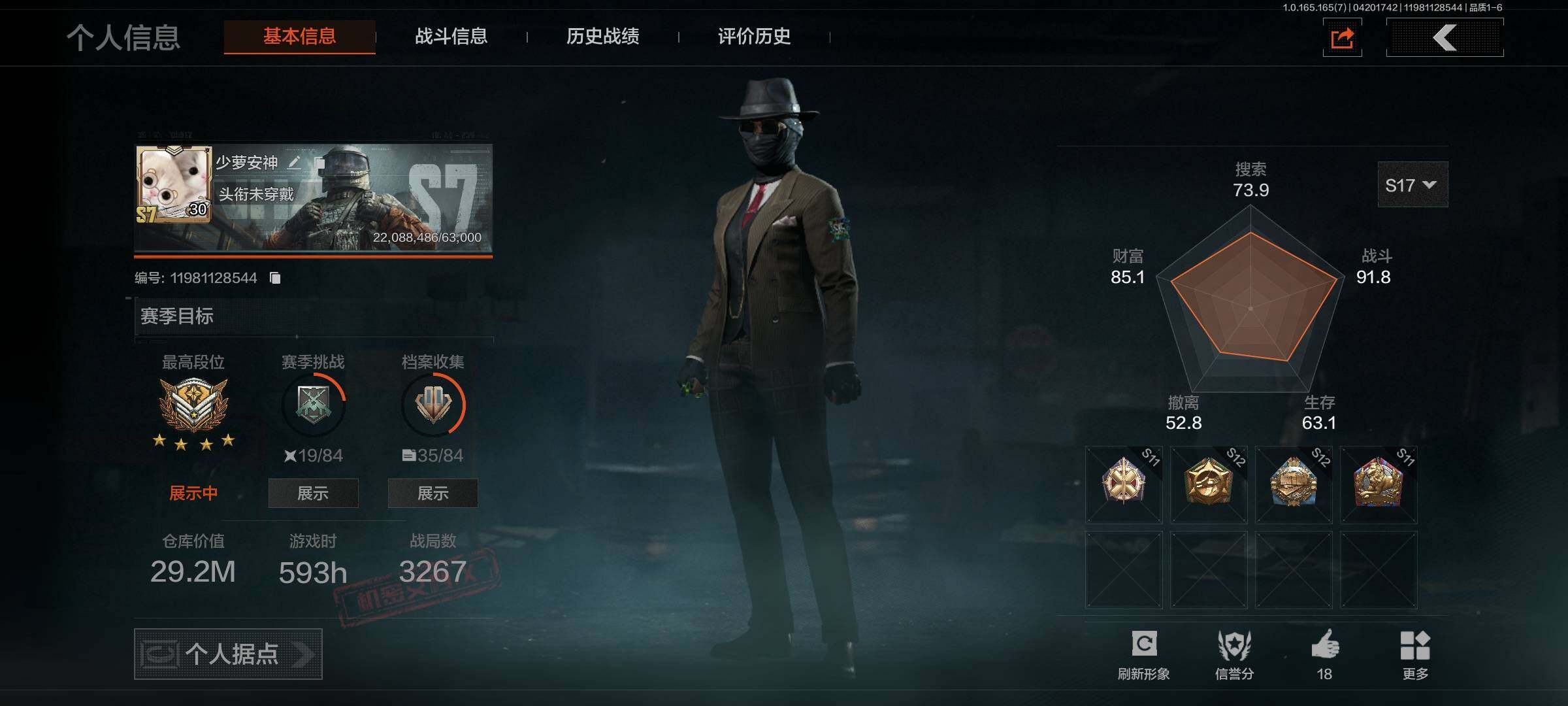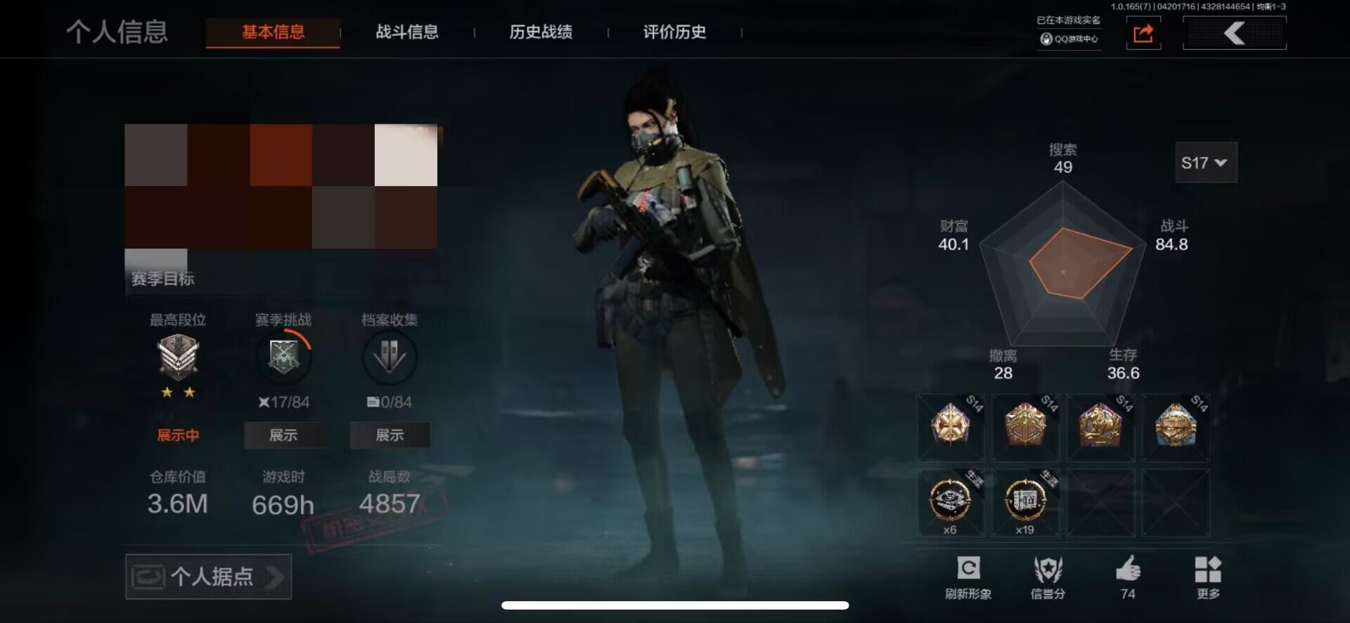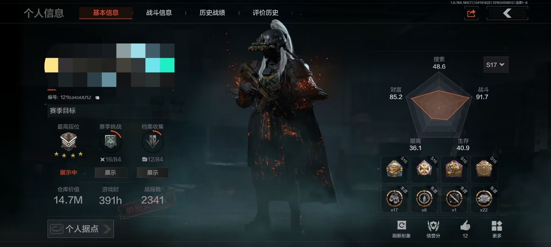 【C2610999343】【AQQH1283】等级:30/段位:新锐/仓库价值(百万):331.8/柯恩币:119000000/瑞兔折刀/急袭弯刀/赢家匕首/白蔷薇斯黛拉/火绒塔莉娅/长夜千军武将
