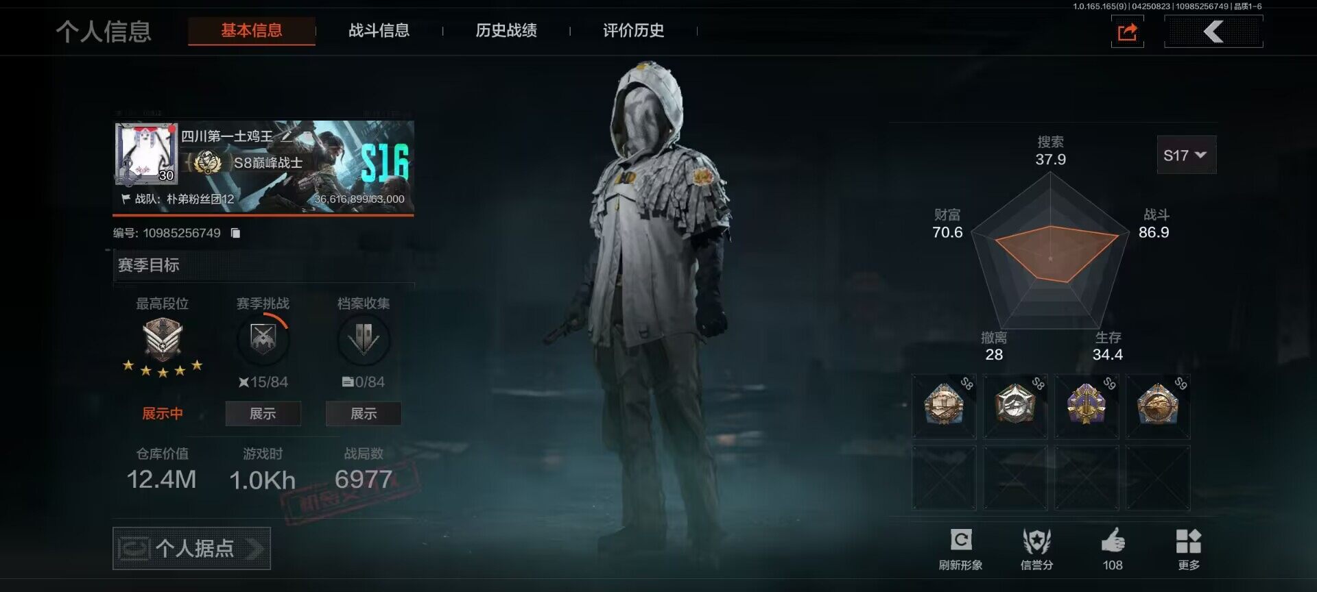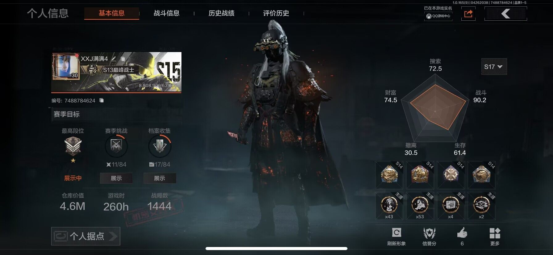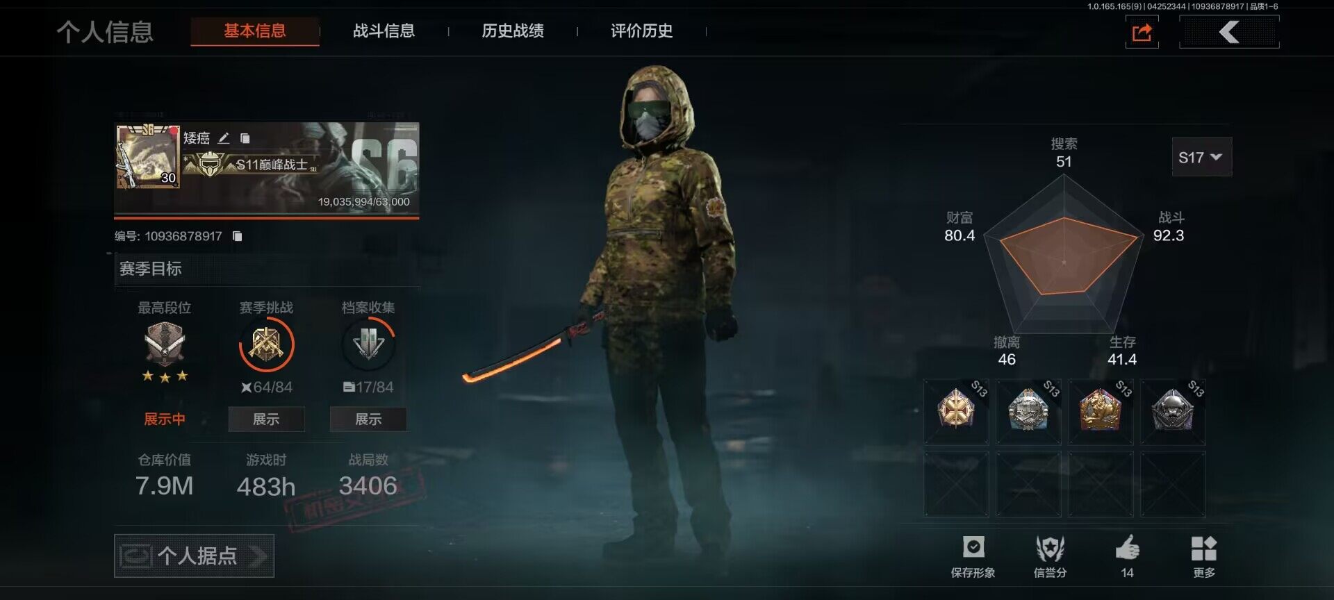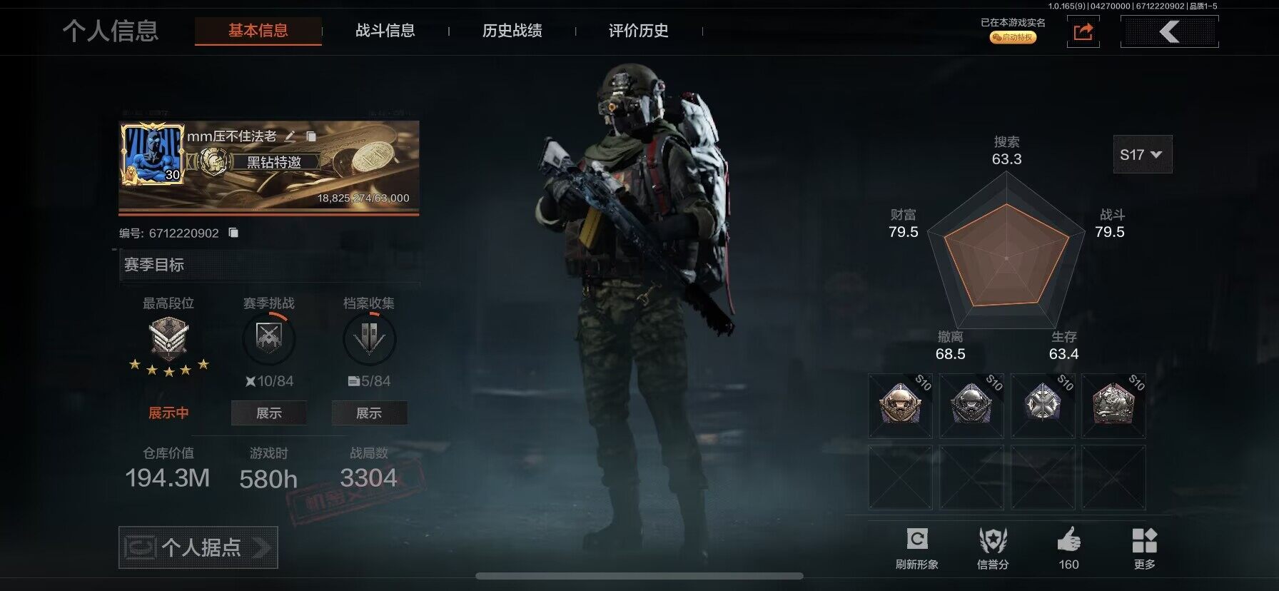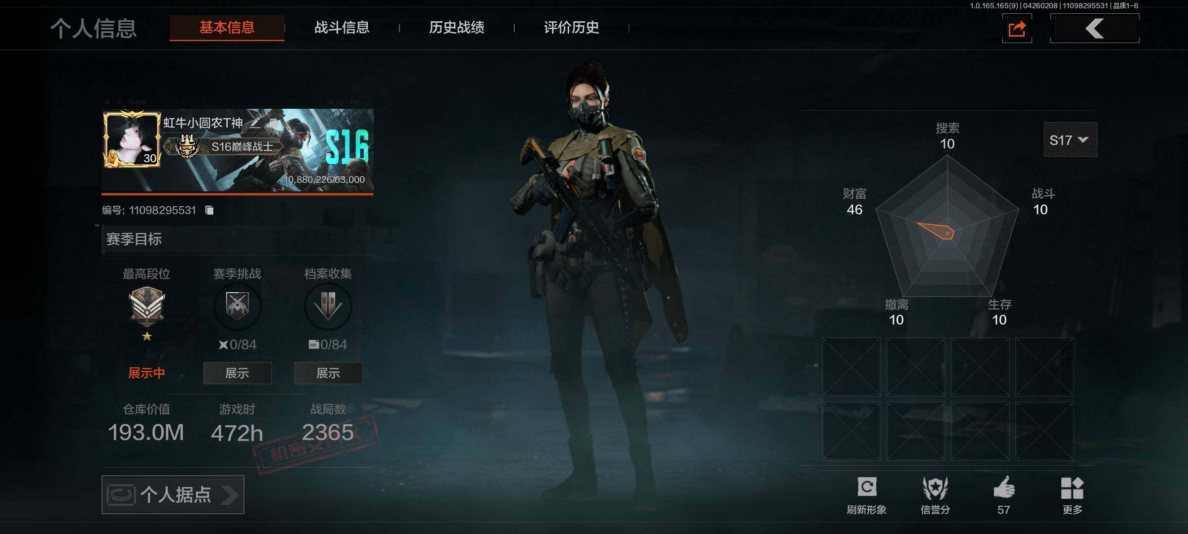 【C2611596553】【AQZG2387】等级:30/段位:专家/仓库价值(百万):177/柯恩币:34/急袭弯刀/工兵铲/苍穹利爪/百炼恒常/蝮蛇/冥河/深潜行者II/苍白隐者伪装服/林中人·FAL/镀火熔金H416/战术大师AN94/旧王圣谕QBZ191/百锻铁骑AEK/利齿风暴MPX/旧王圣谕VSS/冰河碎影MK14/千炼铁阵MK14/骑士之剑AX50/近卫荣誉RPK16/芭斯特